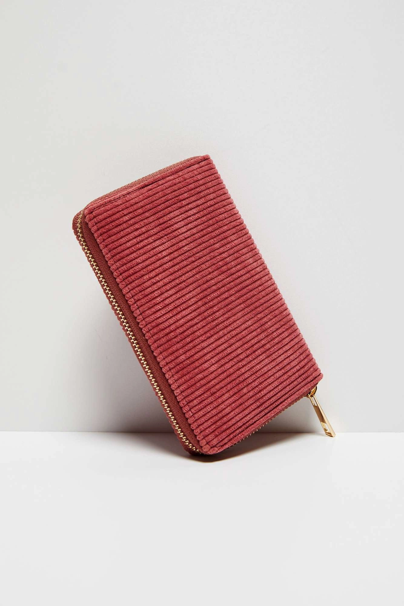 100%POLIESTER. Średniej wielkości portfel w pięknym różowym kolorze. Strukturalny efekt tworzy prążkowany materiał. Bardzo przyjemny i miły w dotyku. Bardzo oryginalny efekt. Zapinany na zamek błyskawiczny w kolorze złotym. Wewnątrz przegródki na karty, miejsce na banknoty oraz zapinana kieszeń na bilon. Świetny pomysł na prezent dla przyjaciółki, mamy lub siostry. Wymiary produktu: 13,50 x 10cm