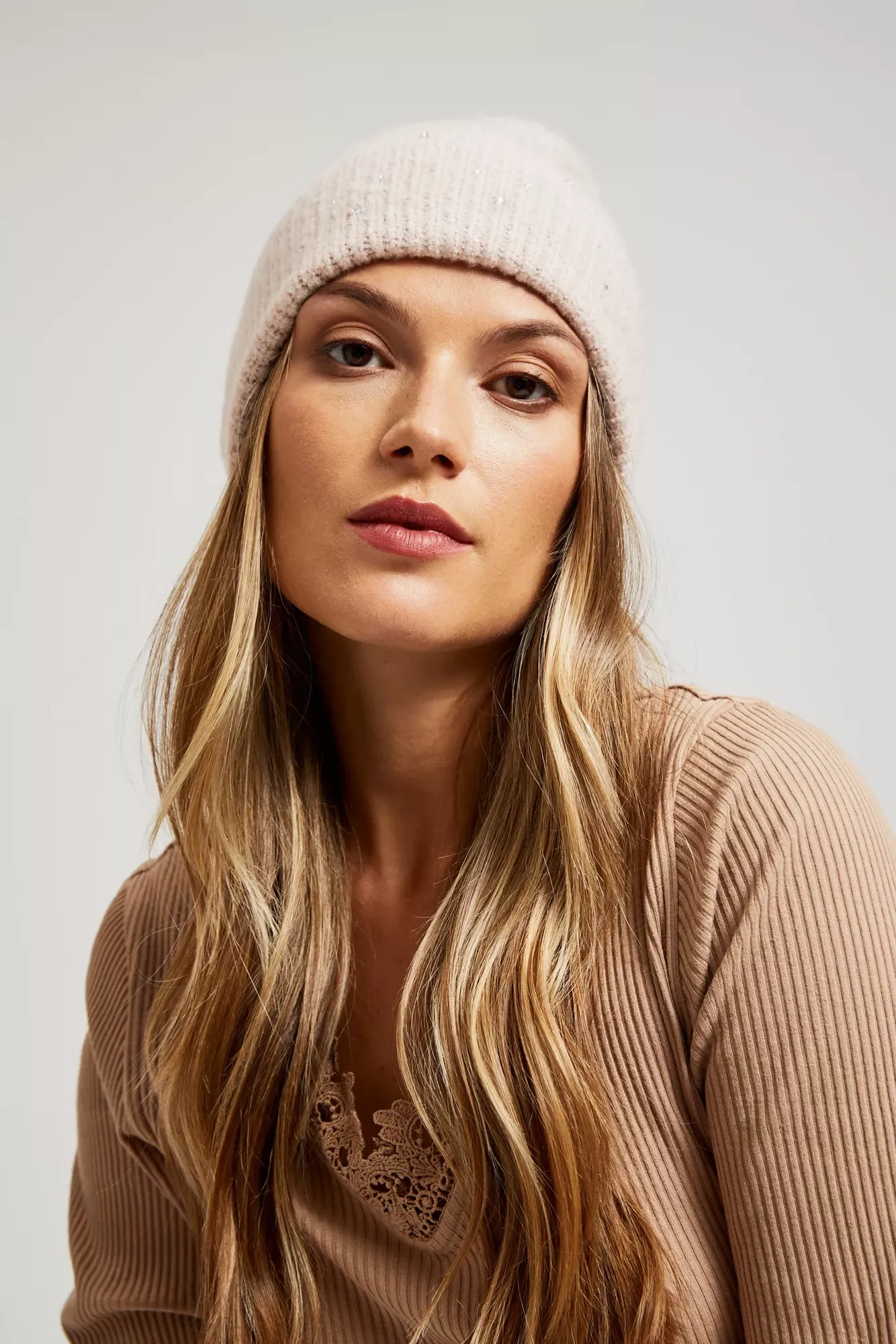 Dzianinowa czapka pudrowo-różowaDzianinowa czapka pudrowo-różowaDzianinowa czapka pudrowo-różowa