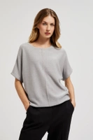 81%AKRYL 19%METALIZOWANA NITKA Sweter damski w kolorze czarnym, gładki bez wzoru z metaliczną nitką. Wykonany z akrylu, nietoperzowy krój nadaje mu luźny i wygodny charakter. Rękaw krótki, dekolt łódka dodają elegancji i sprawiają, że jest to idealny wybór na wiele okazji. Doskonale sprawdzi się zarówno na co dzień, jak i na spotkania ze znajomymi czy randkę. Pasuje do spodni, spódnic, jak i do eleganckich spodni. Ten sweter to idealny wybór dla kobiet ceniących sobie wygodę i modny wygląd.