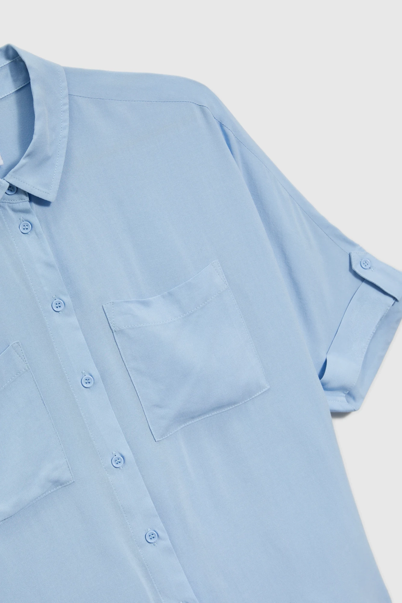 Wiskozowa koszula z krótkimi rękawami blękitna