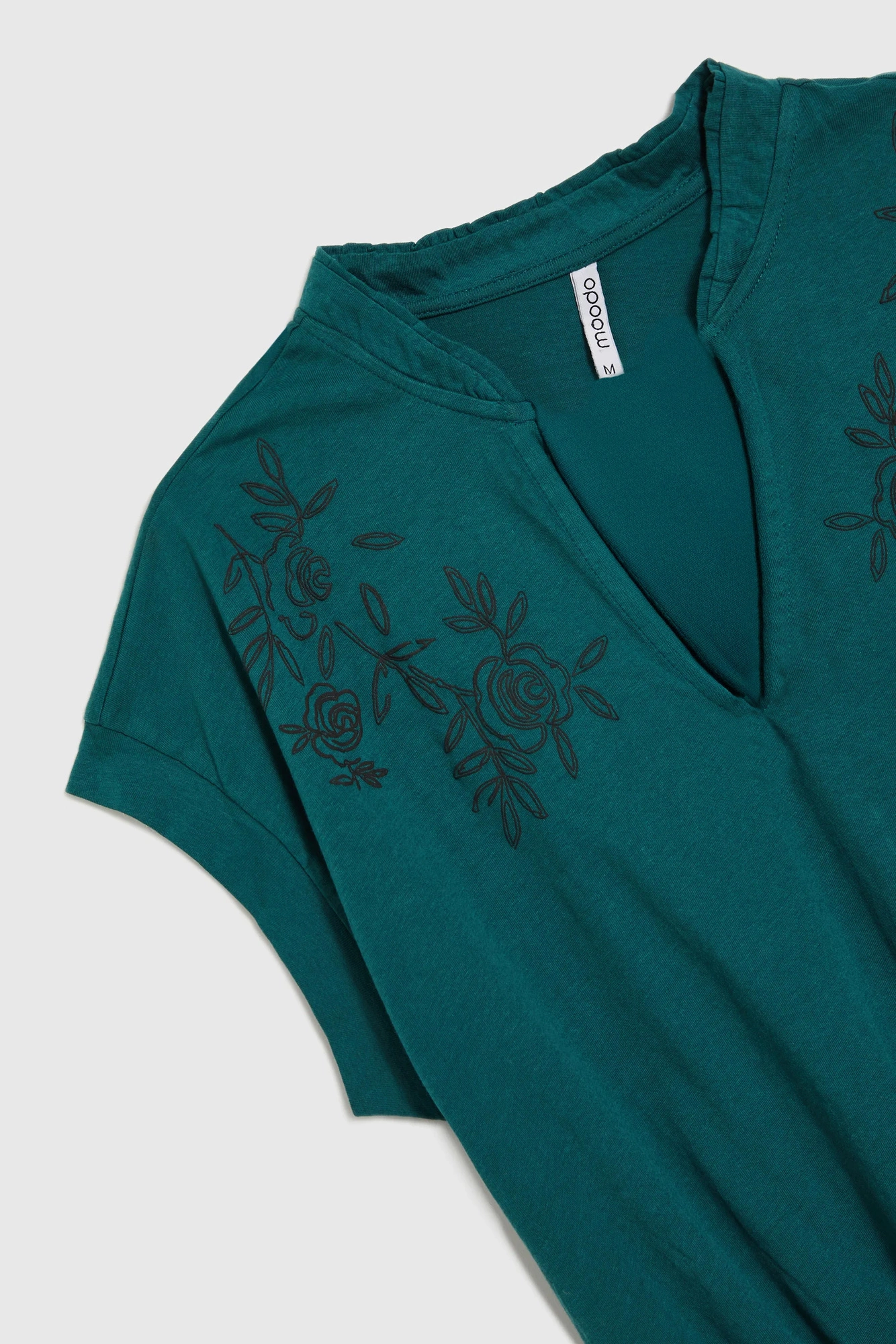 100% BAWEŁNA Bluzka w kolorze zielonym to idealny wybór dla każdej kobiety. Wykonana z przyjemnej w dotyku bawełny, zapewniającej komfort noszenia. Posiada ściągacz na dole oraz nadruk w kontrastowym kolorze. Bluzka z krótkimi rękawami co sprawia, że doskonale nadaje się na ciepłe dni. Ta bluzka doskonale sprawdzi się na wiele okazji, zarówno na codzienne wyjścia, jak i na spotkania ze znajomymi. Doskonale pasuje do jeansów, spódniczek ołówkowych czy szortów. Dzięki swojemu uniwersalnemu designowi, można stworzyć z nią wiele stylizacji na każdą porę roku.