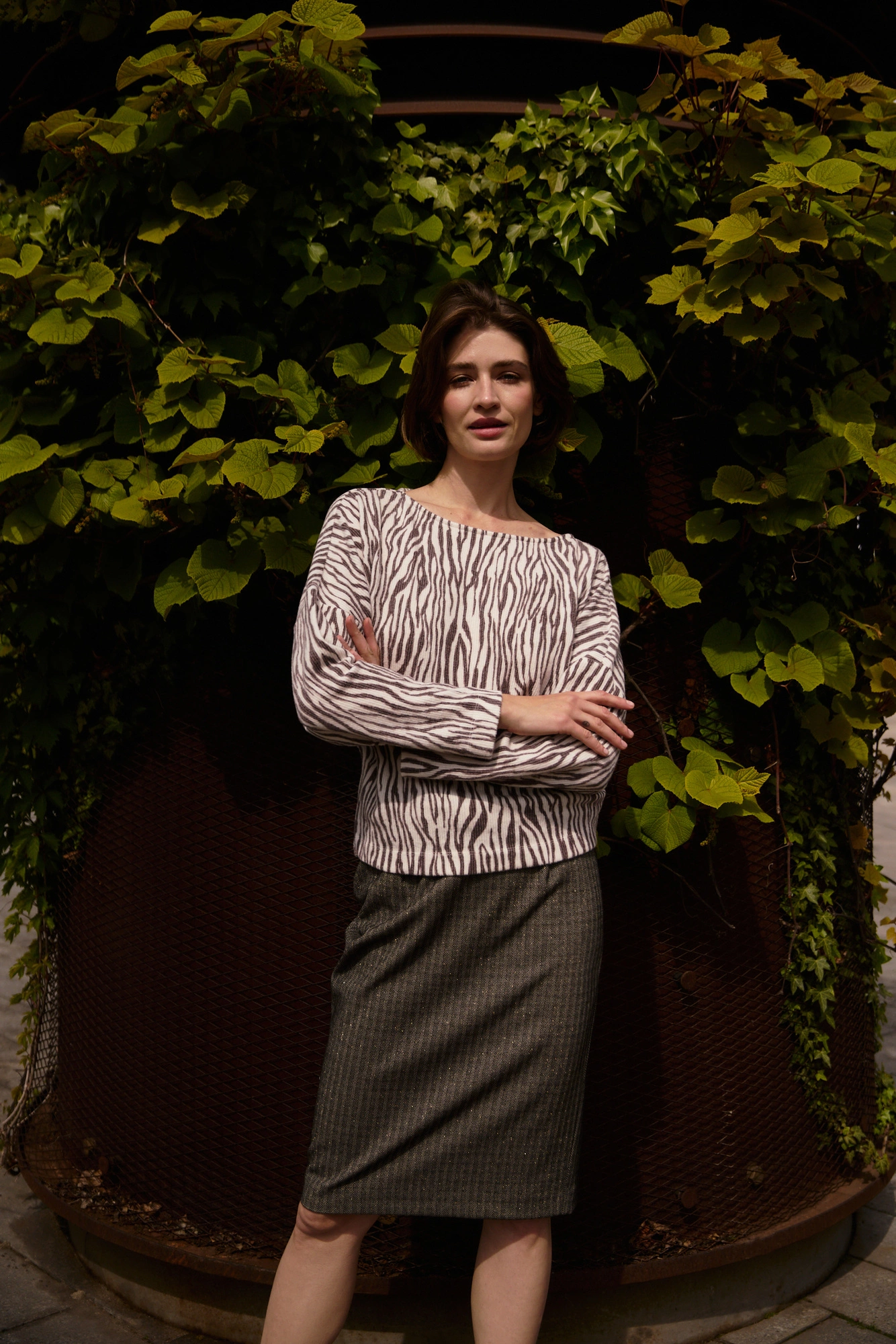 65%WISKOZA,30%POLIESTER,5%ELASTAN Brązowa bluza damska w zwierzęcy wzór to doskonała propozycja dla osób ceniących modny styl i wygodę. Subtelne połączenie kolorów kremowego oraz ecru dodaje elegancji, a oryginalny print przyciąga uwagę. Długi rękaw oraz dekolt typu łódka nadają całości kobiecego charakteru, podkreślając atuty sylwetki. Wkładana przez głowę, bez kaptura i zapięcia, gwarantuje komfort użytkowania na co dzień. Lekka, miła w dotyku wiskoza zapewnia przewiewność oraz przyjemność noszenia nawet przez wiele godzin. Idealna na spotkania ze znajomymi, do pracy, a także na weekendowe wyjścia. Doskonale komponuje się z klasycznymi jeansami, spodniami materiałowymi, a także spódnicą midi. Świetny wybór zarówno do casualowych stylizacji, jak i tych bardziej eleganckich.