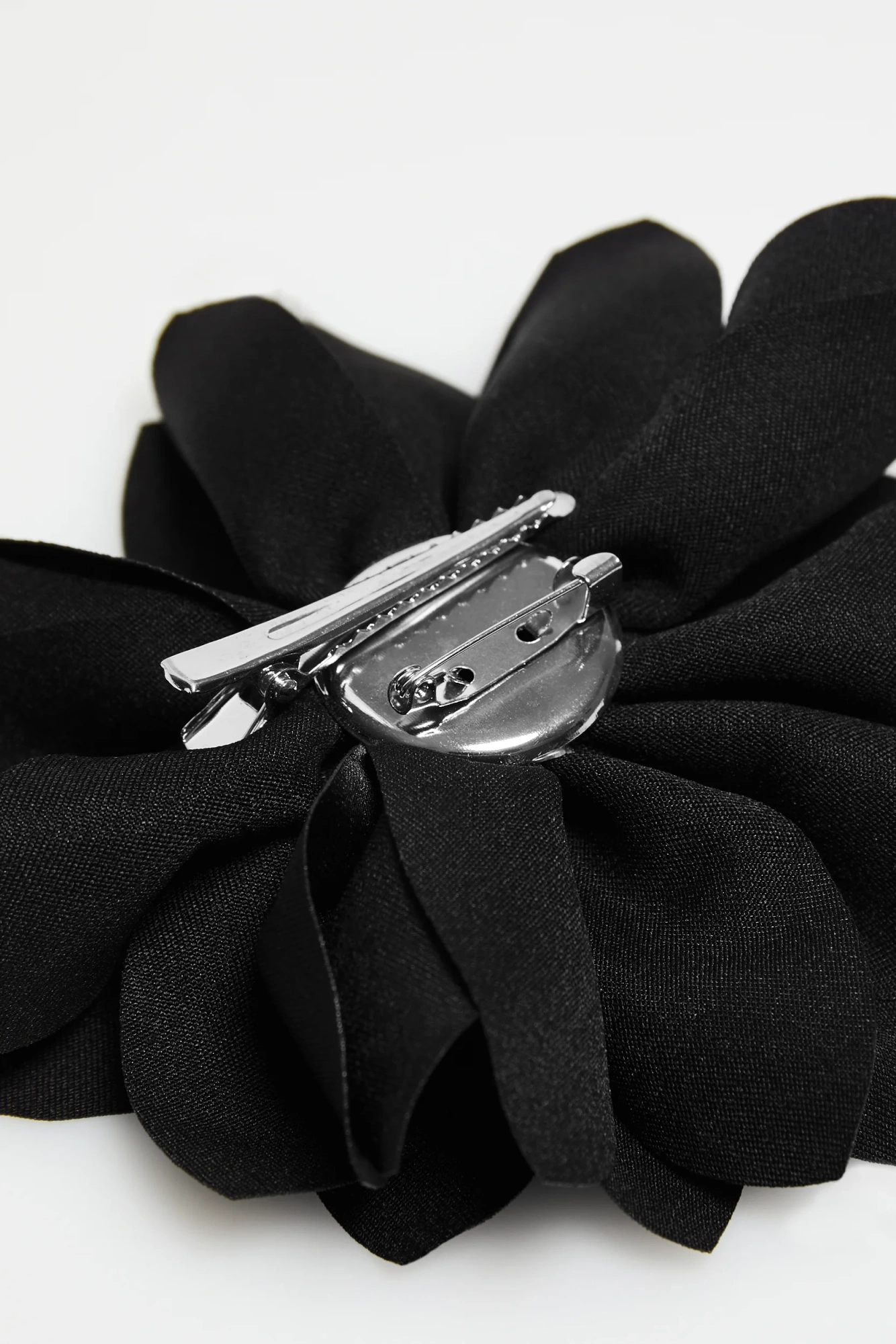 Broszka z tkaninowym kwiatem czarna