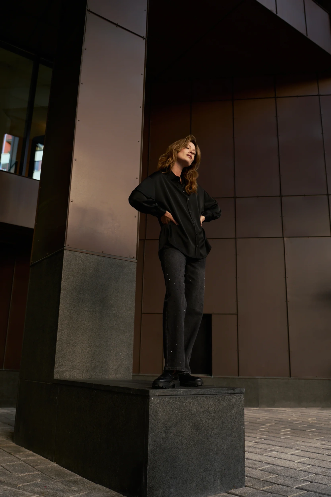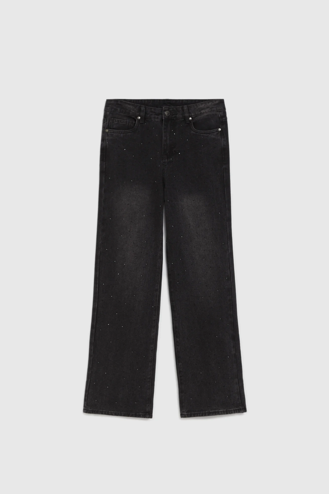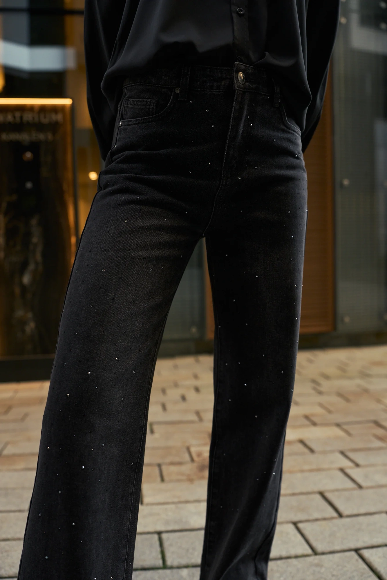 100%BAWEŁNA Grafitowe jeansy damskie typu wide leg w odcieniu szarego to propozycja dla osób ceniących nowoczesny styl i wygodę. Gładka powierzchnia bez wzoru pozwala na łatwe łączenie z różnymi elementami garderoby, a subtelne zdobienia w postaci cyrkonii, pereł oraz dżetów dodają całości eleganckiego charakteru. Zapięcie na zamek ułatwia codzienne użytkowanie, a dopracowany krój z długą nogawką i średnim stanem optycznie wydłuża sylwetkę oraz zapewnia komfort przez cały dzień. Naturalna bawełna z domieszką elastycznych włókien gwarantuje przewiewność i swobodę ruchów.