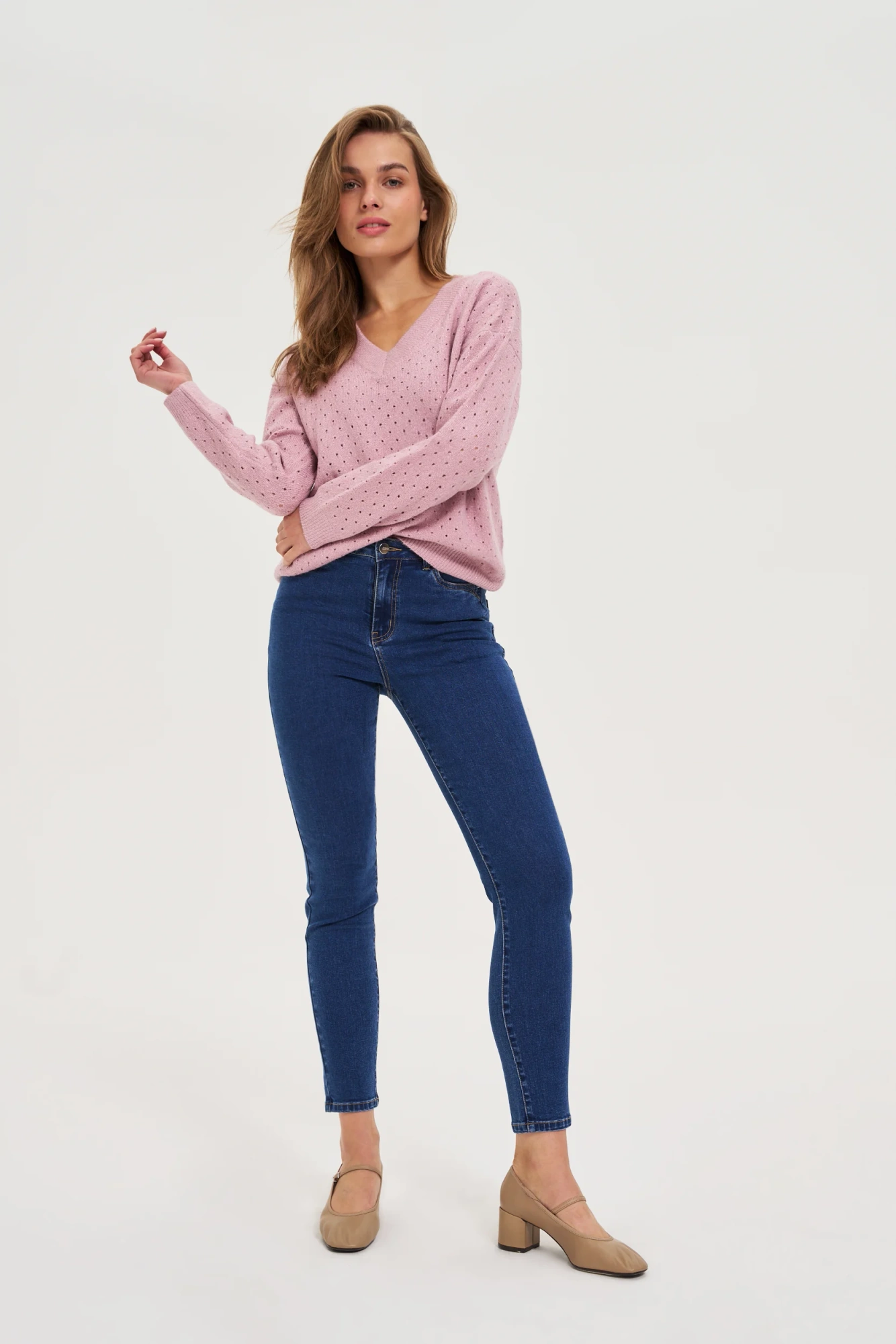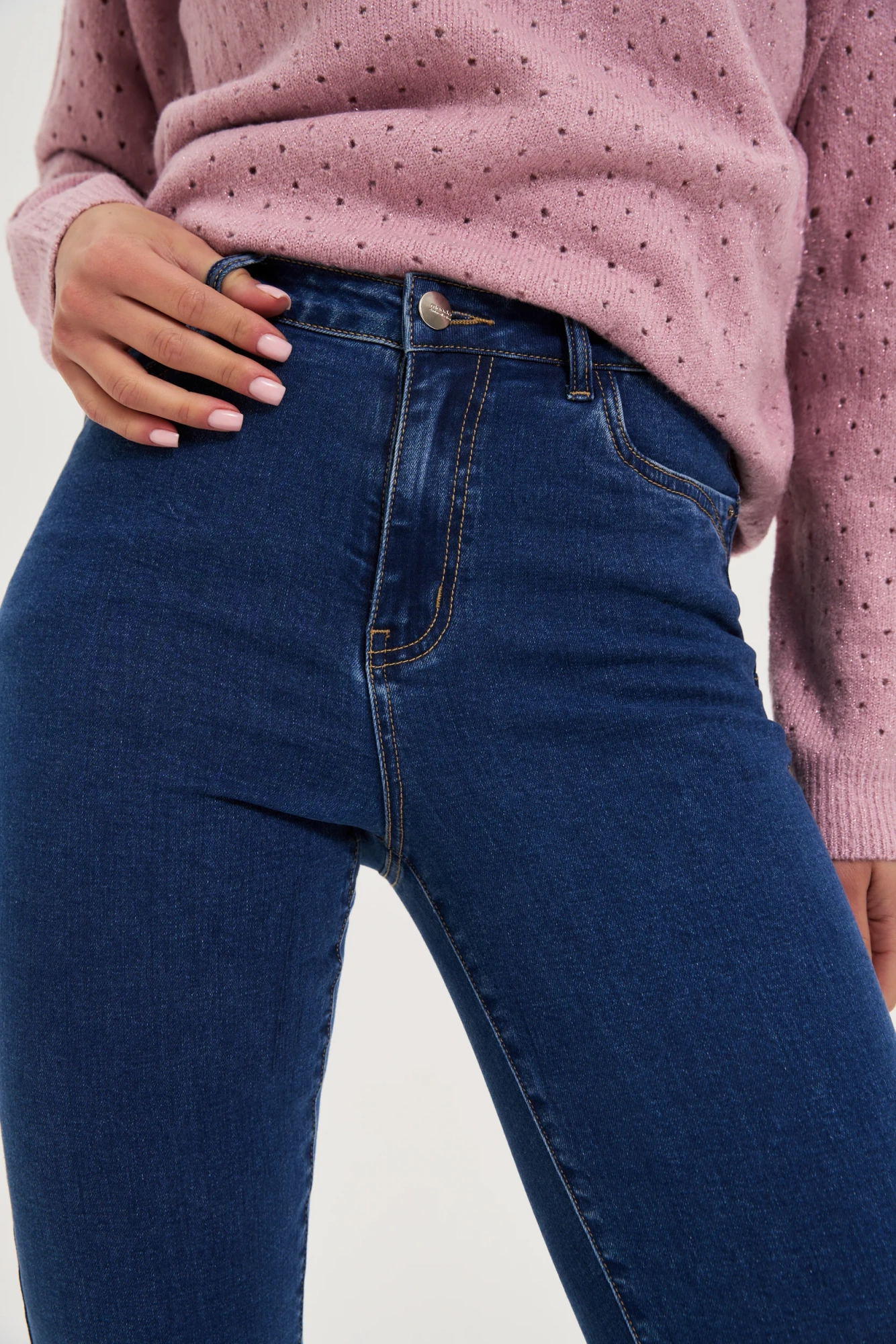 76%BAWEŁNA, 22%POLIESTER, 2%ELASTAN Granatowe jeansy damskie skinny zachwycają ponadczasowym stylem oraz efektem push up, subtelnie podkreślając kobiecą sylwetkę. Gładka, niebieska tkanina, wolna od wzorów, nadaje modelowi uniwersalności i klasy. Długa nogawka typu rurki oraz praktyczny zamek gwarantują wygodne użytkowanie i nowoczesny wygląd. Materiał oparty na naturalnej bawełnie z dodatkiem elastycznych włókien zapewnia komfort noszenia i idealne dopasowanie do ciała. Idealne na codzienne wyjścia, spotkania z przyjaciółmi czy casualowe dni w pracy. Doskonale komponują się z białą koszulą, swetrem oversize, elegancką marynarką lub sportową bluzą. Świetnie prezentują się zarówno ze szpilkami, jak i sneakersami, tworząc modny look na każdą okazję.