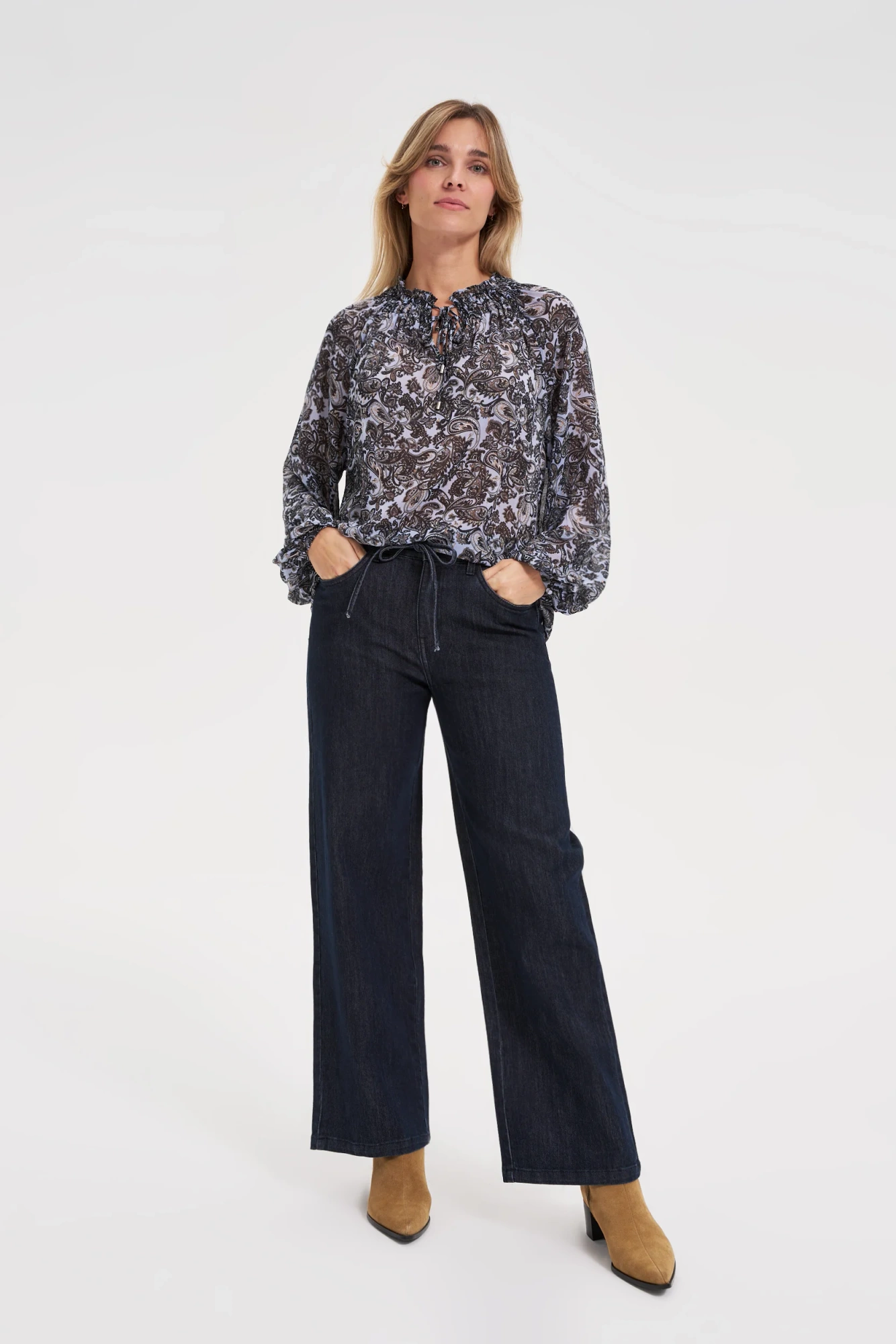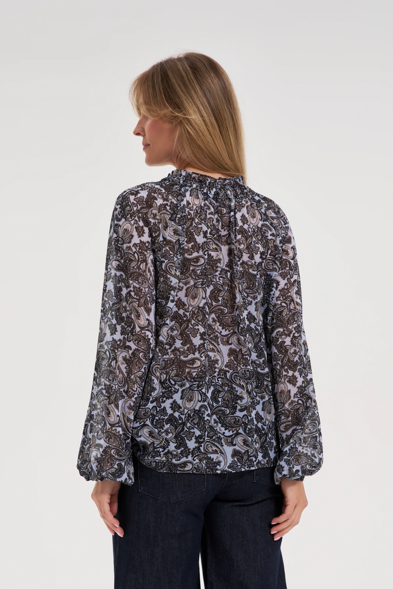 100%POLIESTER Koszula damska w oryginalny wzór łączy klasyczny krój z nowoczesnym designem, przyciągając uwagę subtelnym połączeniem czerni i niebieskości. Długi rękaw sprawia, że model idealnie sprawdza się w chłodniejsze dni, a wiązanie pod szyją dodaje elegancji oraz możliwości indywidualnego dostosowania stylizacji. Lekki, przyjemny w dotyku materiał z przewagą poliestru gwarantuje komfort noszenia przez cały dzień i łatwość pielęgnacji. Idealna propozycja zarówno do pracy, na spotkania biznesowe, jak i wieczorne wyjścia czy rodzinne uroczystości. Koszula doskonale komponuje się z klasycznymi spodniami materiałowymi, ołówkową spódnicą lub jeansami, tworząc stylowe i unikatowe zestawienia na każdą okazję.