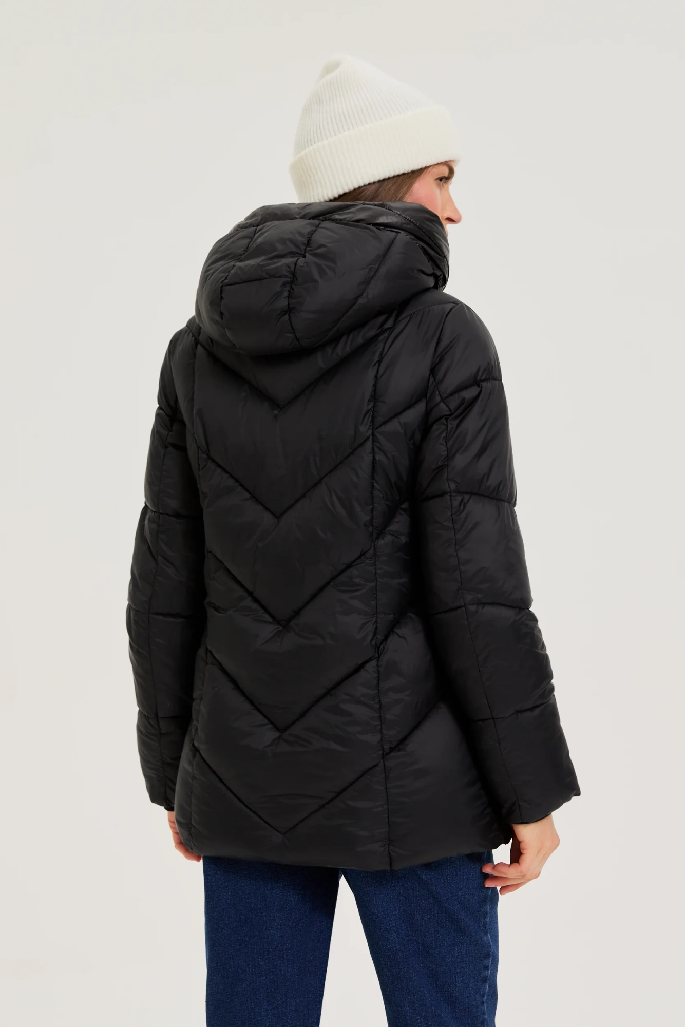 Pikowana kurtka z kapturem czarna