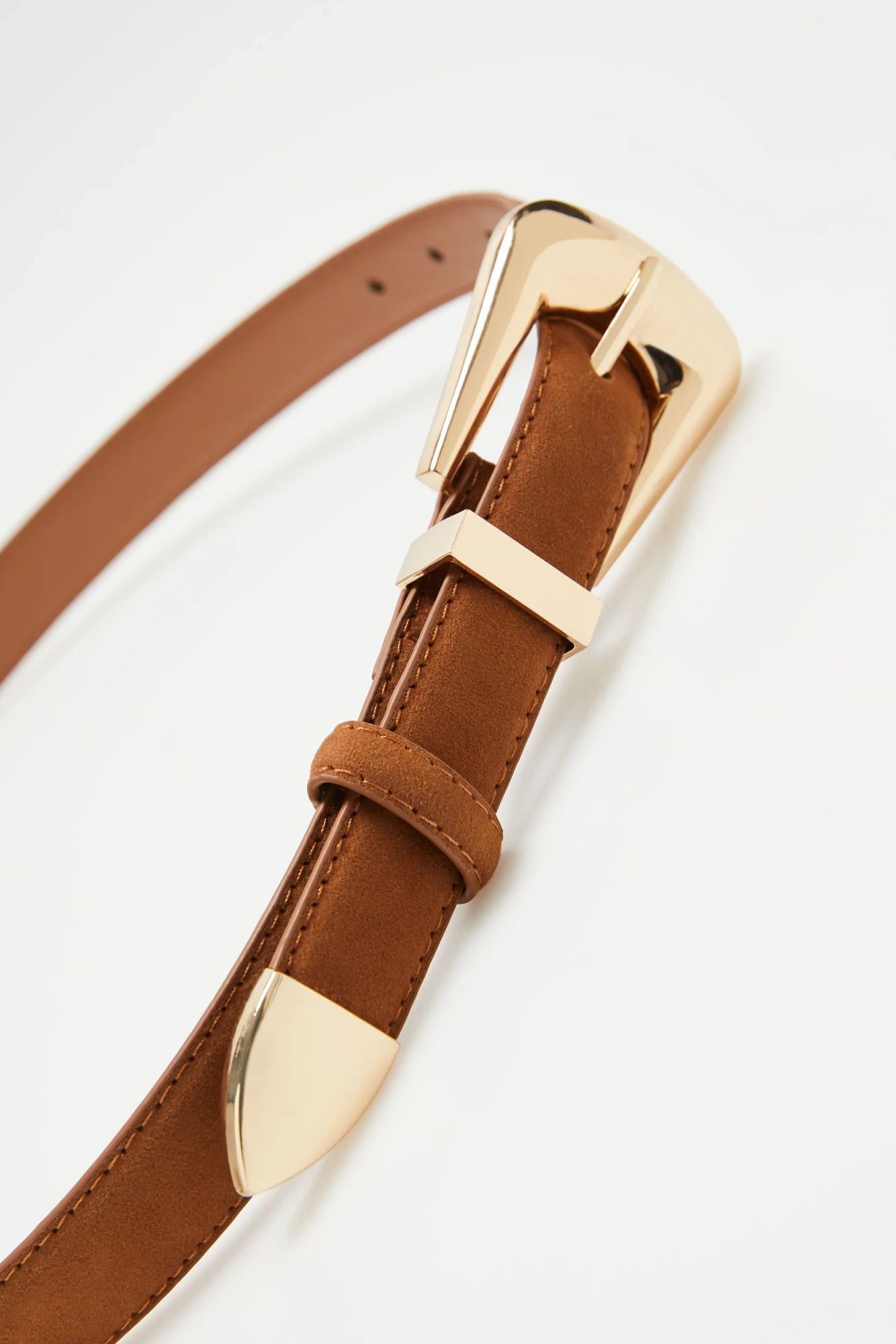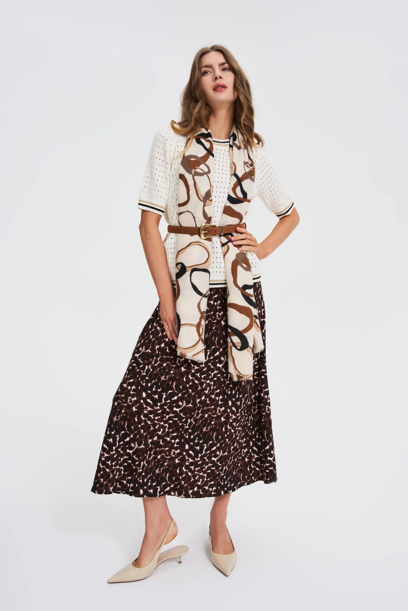 50% POLIURETAN 50% POLIESTER Brązowy pasek damski to ponadczasowy dodatek, który doskonale podkreśla każdą stylizację. Gładka powierzchnia bez wzoru w połączeniu z ozdobną klamrą oraz szlufką w złotym kolorze nadaje elegancji oraz subtelnego blasku. Wykonany z trwałego poliuretanu, pasek zachowuje elastyczność i odporność na codzienne użytkowanie, gwarantując wygodę oraz stylowy wygląd przez długi czas. Idealny na oficjalne spotkania, do pracy, jak i na co dzień, sprawdzi się w każdej sytuacji wymagającej szyku i schludnego wyglądu. Świetnie komponuje się zarówno z klasycznymi spodniami, jak i eleganckimi sukienkami czy spódnicami. Stanowi doskonałe uzupełnienie stylizacji z marynarką oraz luźniejszym swetrem, podkreślając talię i dodając wyrafinowanego akcentu.