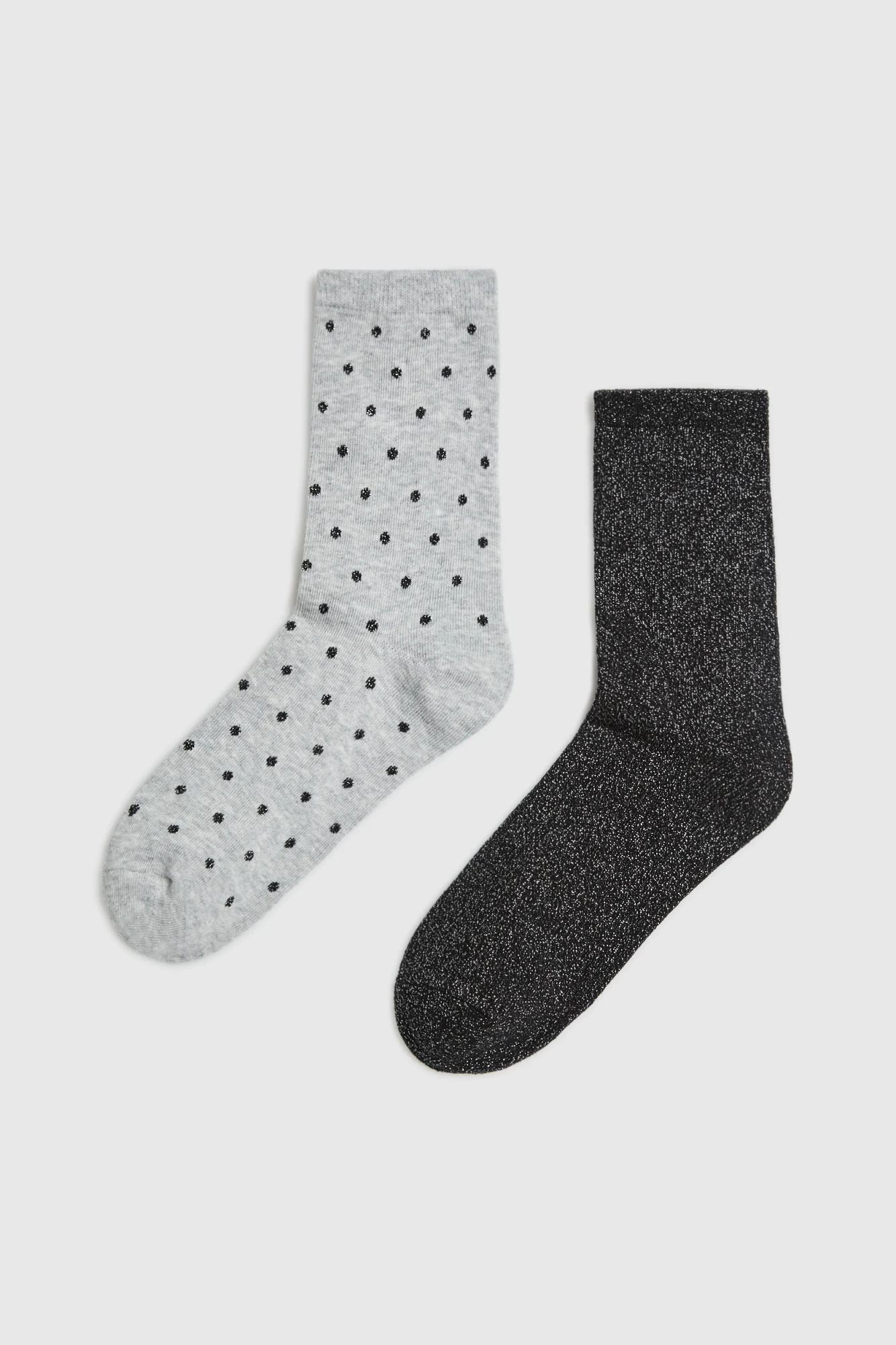 70% BAWEŁNA 17% POLIESTER, 10% METALIZOWANA NITKA, 3%ELASTAN Długie skarpetki zapewniają ochronę i wygodę nawet w chłodniejsze dni. Skład oparty na miękkiej, oddychającej bawełnie gwarantuje przyjemne uczucie podczas noszenia, a elastyczność materiału zapobiega zsuwaniu się skarpetek. Pasują także do sneakersów, botków oraz klasycznych półbutów.