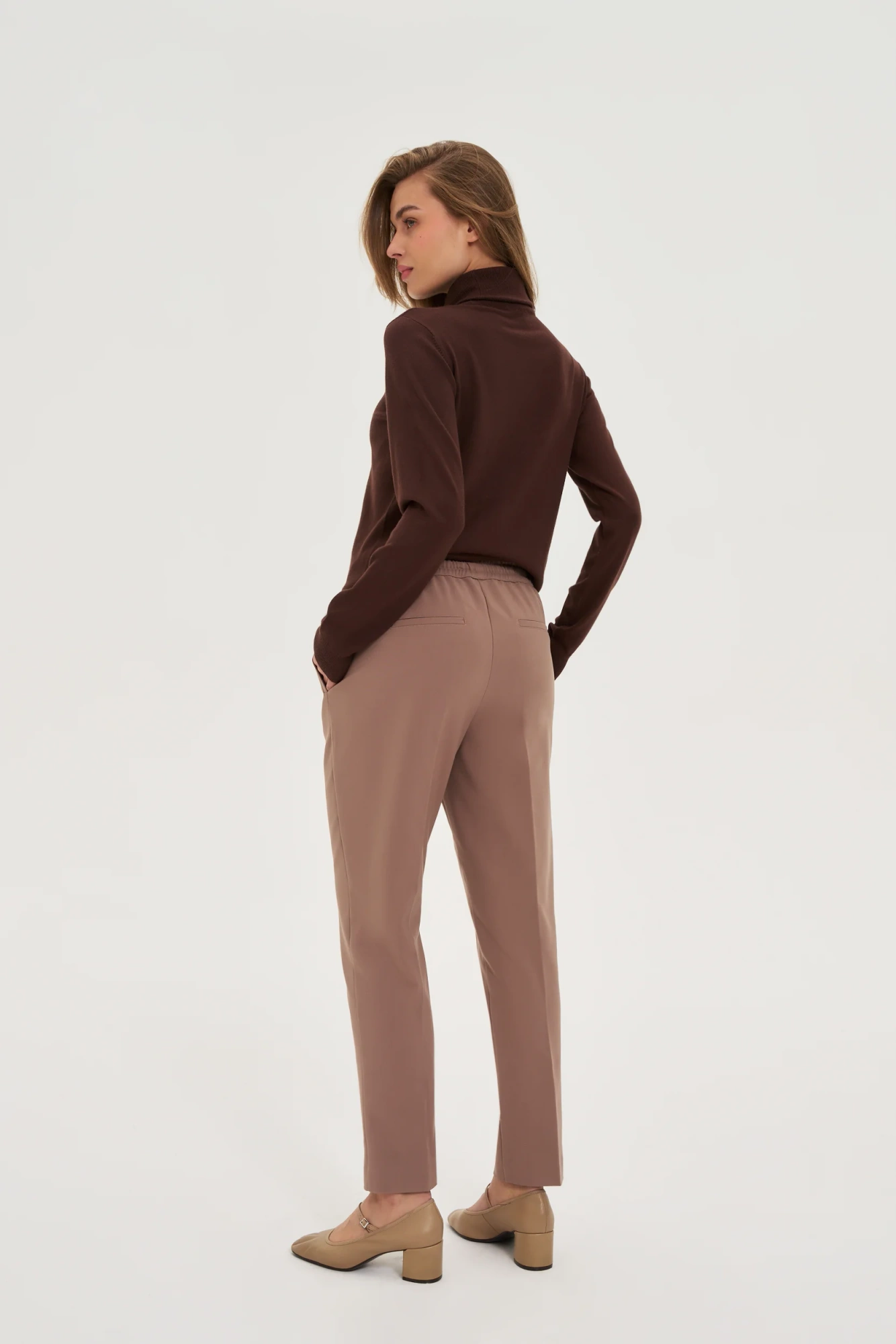 Spodnie w kant z prostymi nogawkami ciemnobeżowe