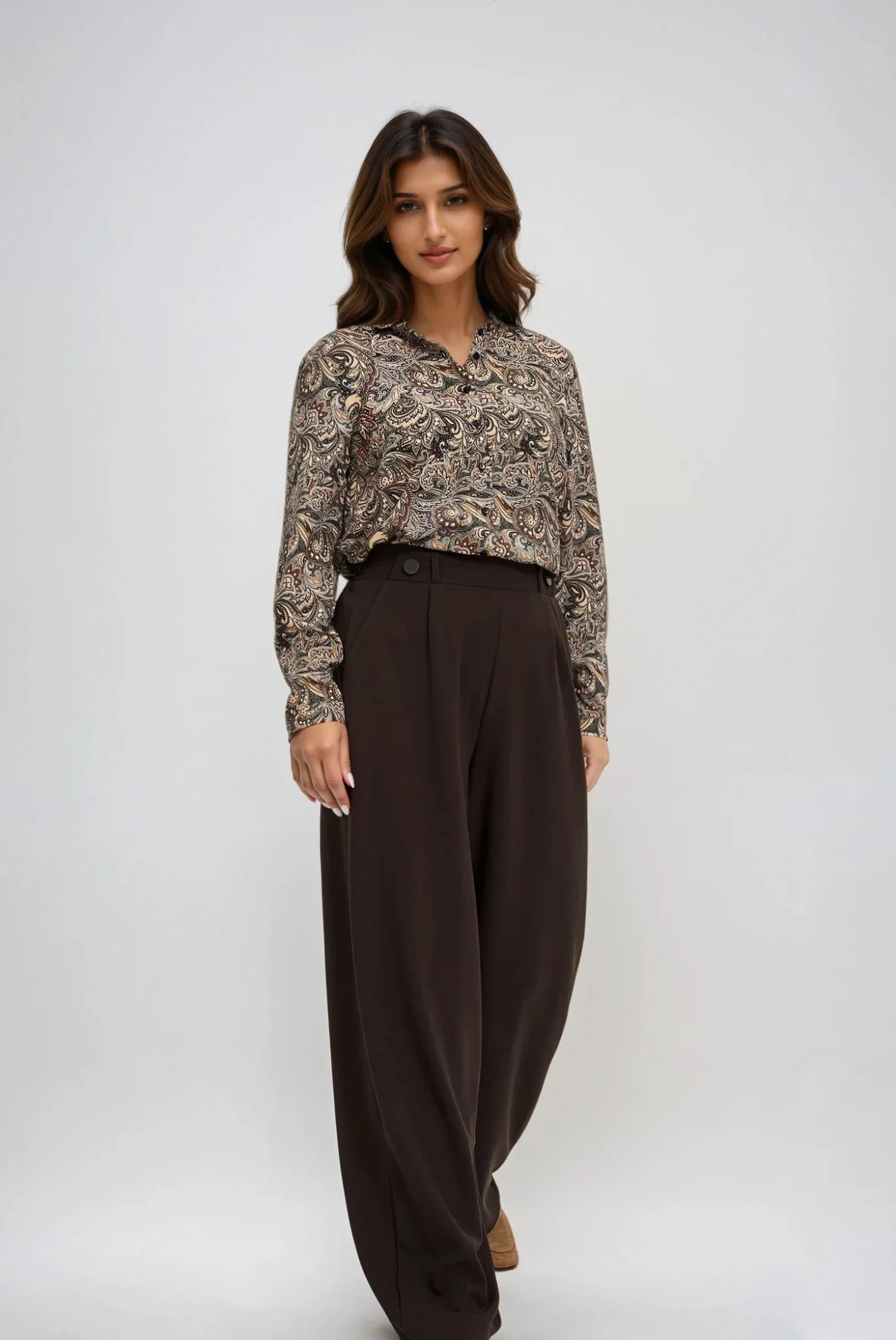Eleganckie spodnie z szerokimi nogawkami brązowe