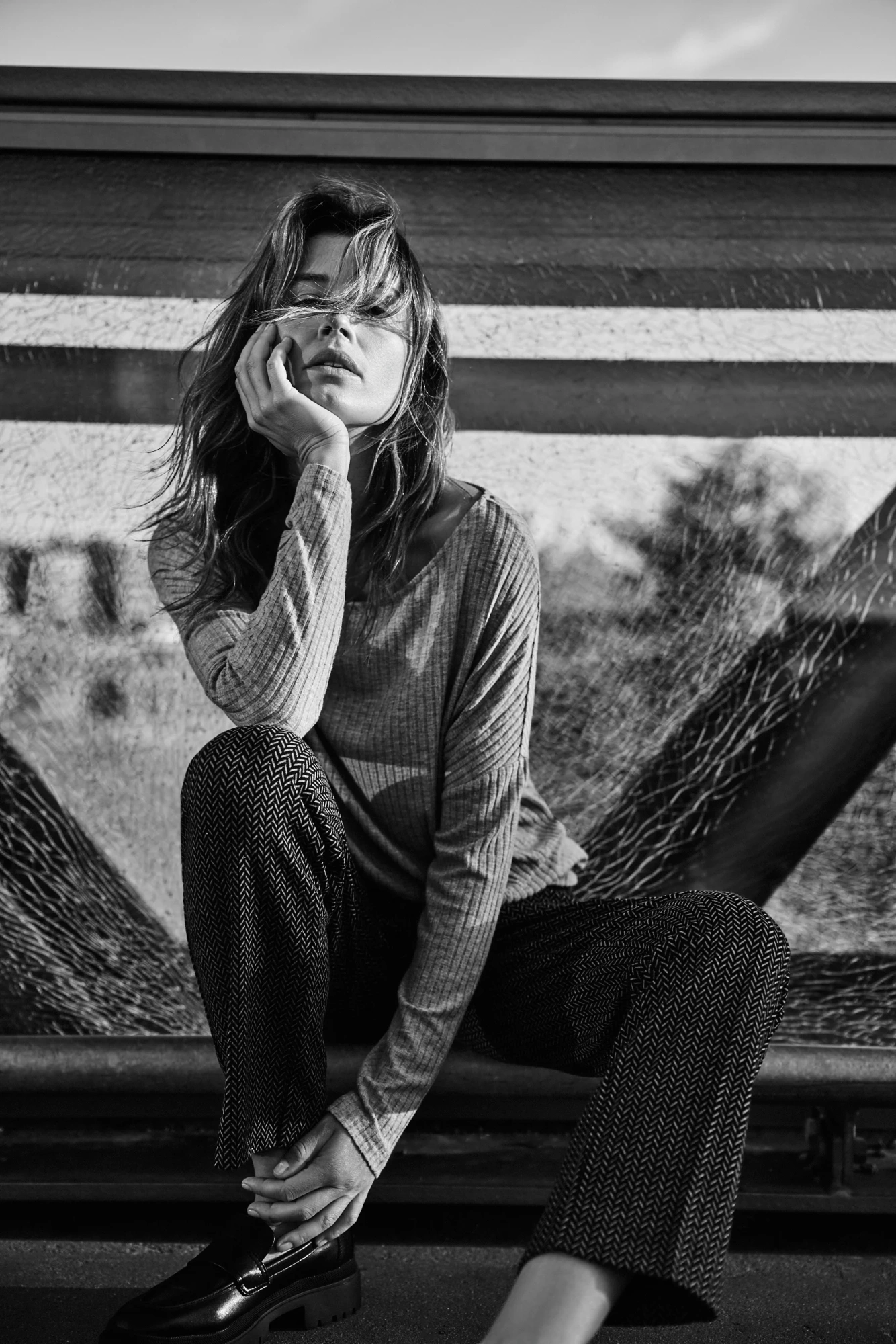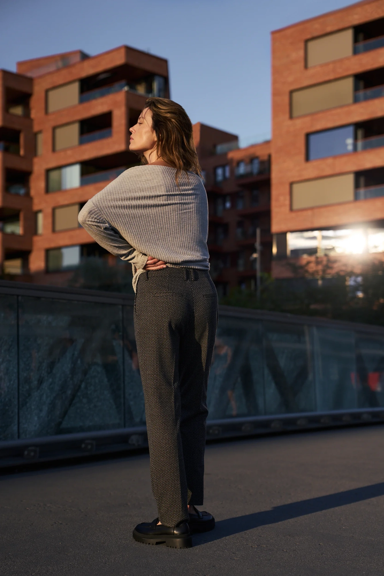 Spodnie w jodełkę grafitowe