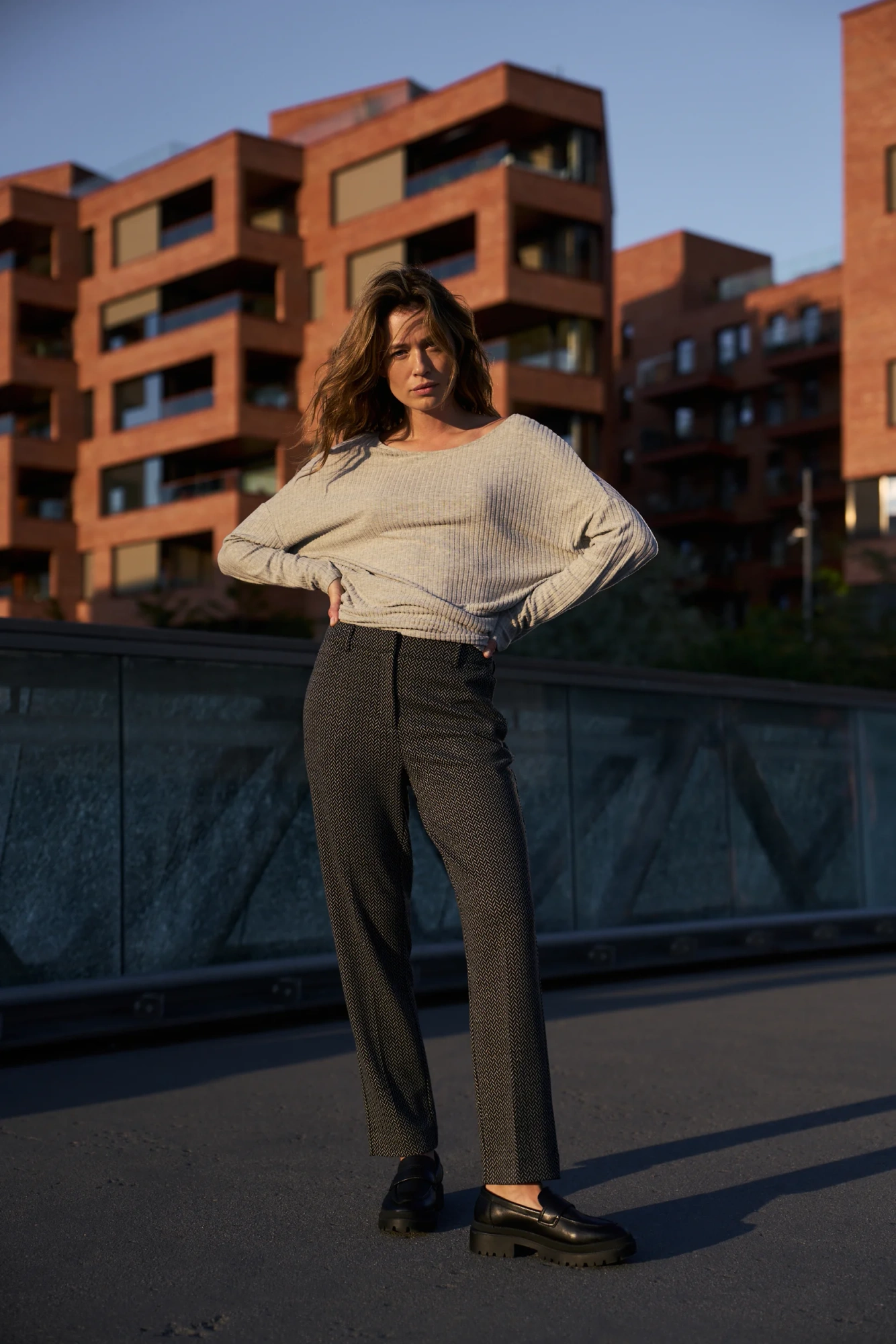 75%POLIESTER, 20%WISKOZA, 2%ELASTAN, 1.5%POLIAMID, 1.5%METALIZOWANA NITKA Grafitowe spodnie damskie w jodełkę to synonim nowoczesnej elegancji i wygody na co dzień. Klasyczny kant oraz dopasowany krój cygaretek pięknie podkreślają sylwetkę, a praktyczne kieszenie dodają funkcjonalności. Długa nogawka sprawdzi się zarówno w biurowych, jak i mniej formalnych stylizacjach. Zapinane na zamek oraz guziki, gwarantują komfort noszenia przez cały dzień. Materiał to połączenie trwałego poliestru oraz tkanin zapewniających wygodę i przewiewność. Idealny wybór na spotkania biznesowe, uroczystości rodzinne czy wyjścia ze znajomymi. Świetnie komponują się z białą koszulą, żakietem, swetrem lub klasycznym t-shirtem. Pasują zarówno do szpilek, jak i mokasynów czy sneakersów, tworząc stylizacje na różne okazje. Spodnie grafitowe w jodełkę to must-have w każdej kobiecej garderobie szukającej połączenia stylu i wygody