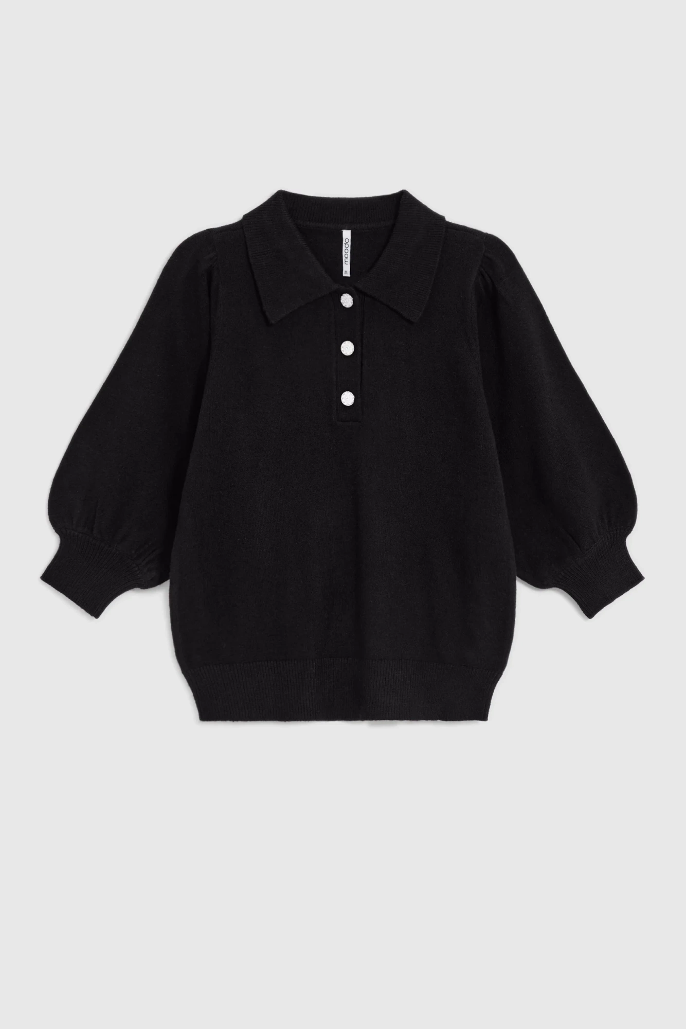 52%WISKOZA, 27%POLIESTER, 21%POLIAMID Czarny sweter damski o klasycznym kroju to propozycja dla osób ceniących ponadczasową elegancję. Gładka faktura materiału podkreśla subtelny styl, a lekkość i przewiewność wiskozy zapewnia komfort przez cały dzień. Model wyposażony został w praktyczny kołnierzyk oraz zapięcie na guziki, co pozwala na wygodne dopasowanie do sylwetki. Idealny wybór na spotkania biznesowe, rodzinne uroczystości czy codzienne wyjścia do miasta. Świetnie komponuje się zarówno ze spodniami materiałowymi, spódnicą ołówkową, jak i jeansami. Doskonale prezentuje się pod marynarką lub żakietem, tworząc uniwersalną bazę do wielu stylizacji. Czarny sweter z kołnierzykiem, gładki i bez wzoru, to must have w każdej garderobie kobiecej szukającej klasyki i wygody.