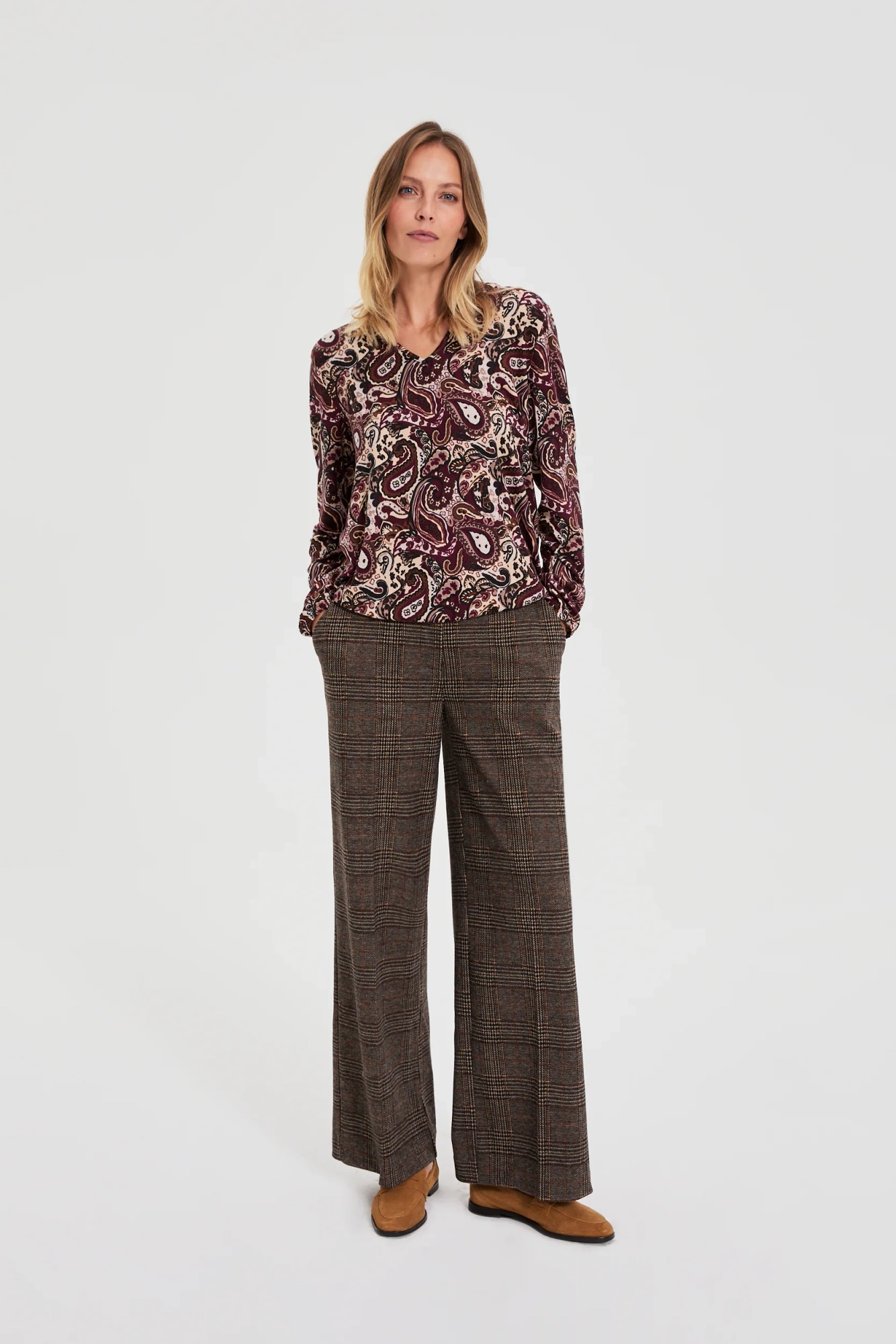 95%POLIESTER,5%ELASTAN Brązowy sweter damski z modnym printem paisley to propozycja dla kobiet ceniących styl i wygodę na co dzień. Luźny fason zapewnia swobodę ruchów, a elastyczna guma u dołu i w mankietach gwarantuje idealne dopasowanie do sylwetki. Długi rękaw oraz dekolt w serek w połączeniu ze stójką nadają swetrowi niepowtarzalny charakter, podkreślając wyjątkowość stylizacji. Miękki materiał z poliestru sprawia, że sweter jest przyjemny w dotyku i łatwy w pielęgnacji. Idealny wybór na spotkania ze znajomymi, wyjścia do pracy czy weekendowe spacery. Doskonale komponuje się zarówno z klasycznymi jeansami, jak i spódnicą midi, tworząc modne stylizacje na różne okazje. Świetnie sprawdzi się także w zestawieniu z materiałowymi spodniami lub legginsami dla uzyskania casualowego looku. Brązowy sweter z oryginalnym nadrukiem to must have nadchodzącego sezonu.