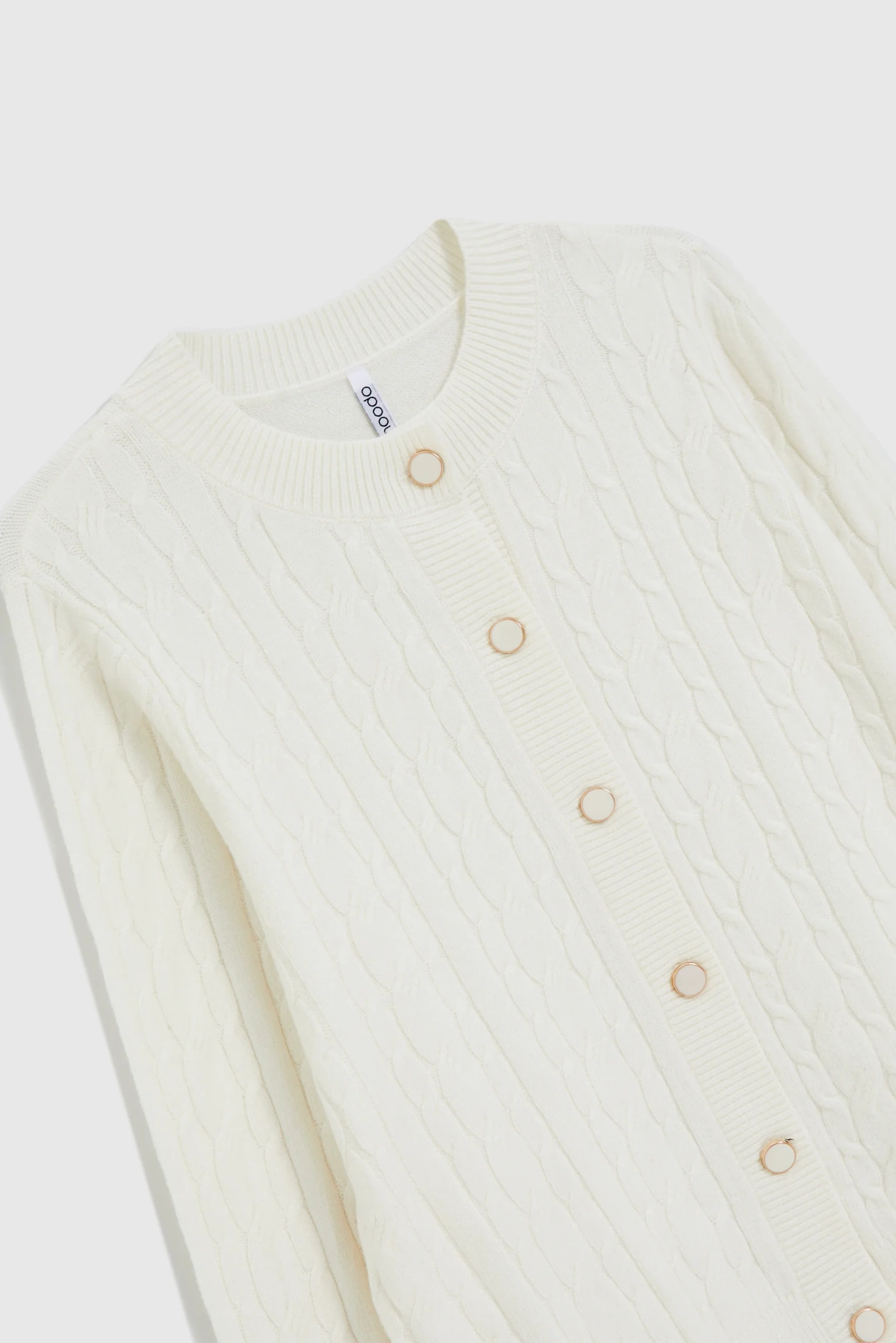 50% WISKOZA, 25% POLIESTER, 25% POLIAMID Kremowy sweter zachwyca modnym, warkoczowym splotem, który przyciąga uwagę i nadaje stylizacji niepowtarzalnego charakteru. Dopasowany fason podkreśla sylwetkę, a długi rękaw oraz okrągły dekolt zapewniają wygodę i komfort noszenia przez cały dzień. Subtelne guziki stanowią praktyczne i dekoracyjne wykończenie, dodając elegancji. Miękka, przyjemna w dotyku dzianina z dodatkiem wiskozy sprawia, że sweter jest przewiewny i delikatny dla skóry. Idealny wybór na rodzinne uroczystości, spotkania ze znajomymi czy do pracy. Doskonale komponuje się zarówno z klasycznymi spodniami materiałowymi, jak i rozkloszowaną spódnicą czy ołówkową sukienką. Świetnie sprawdzi się również w zestawie z jeansami i botkami, tworząc stylową, casualową stylizację na chłodniejsze dni.