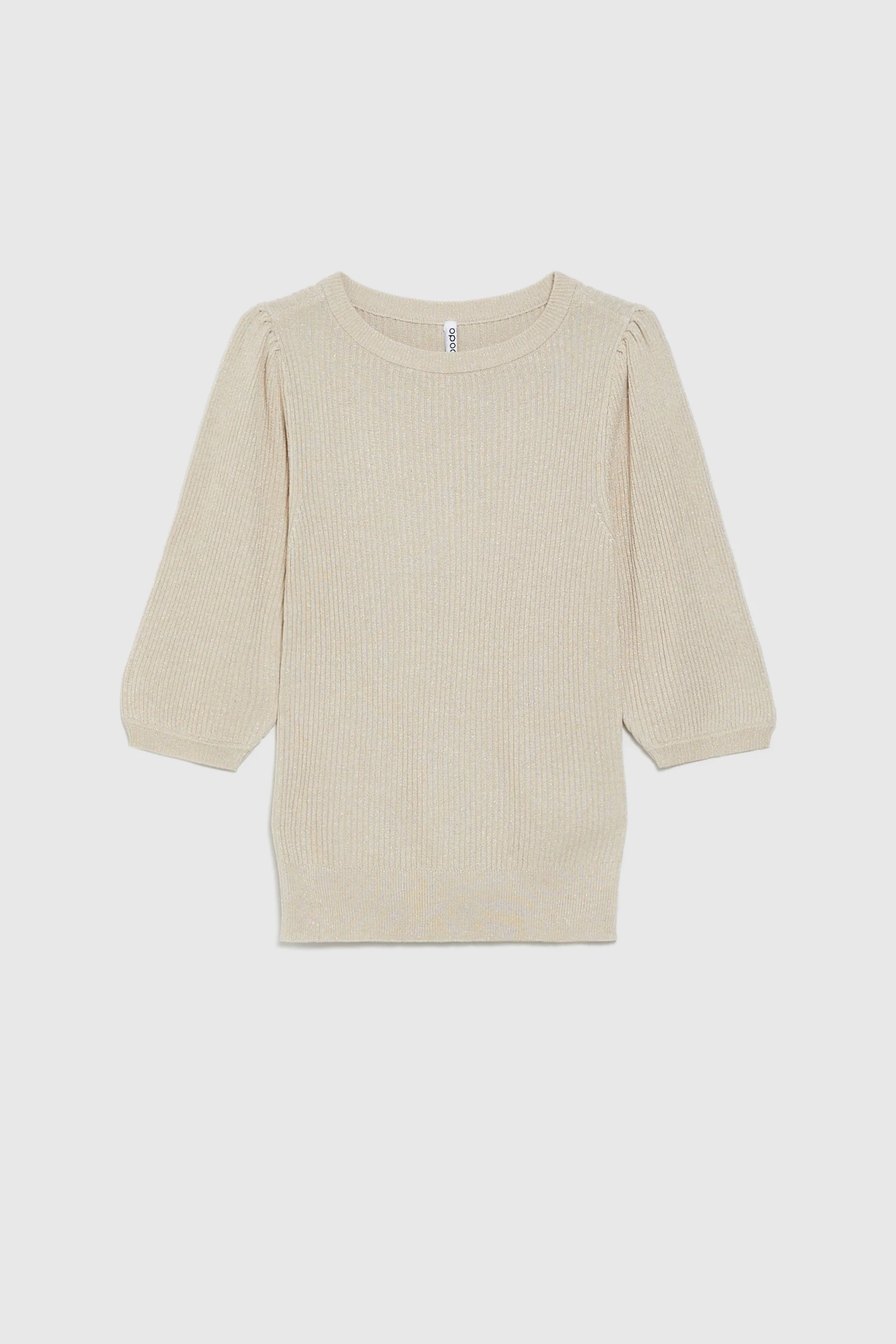 Prążkowany sweter z bufiastymi rękawami beżowy