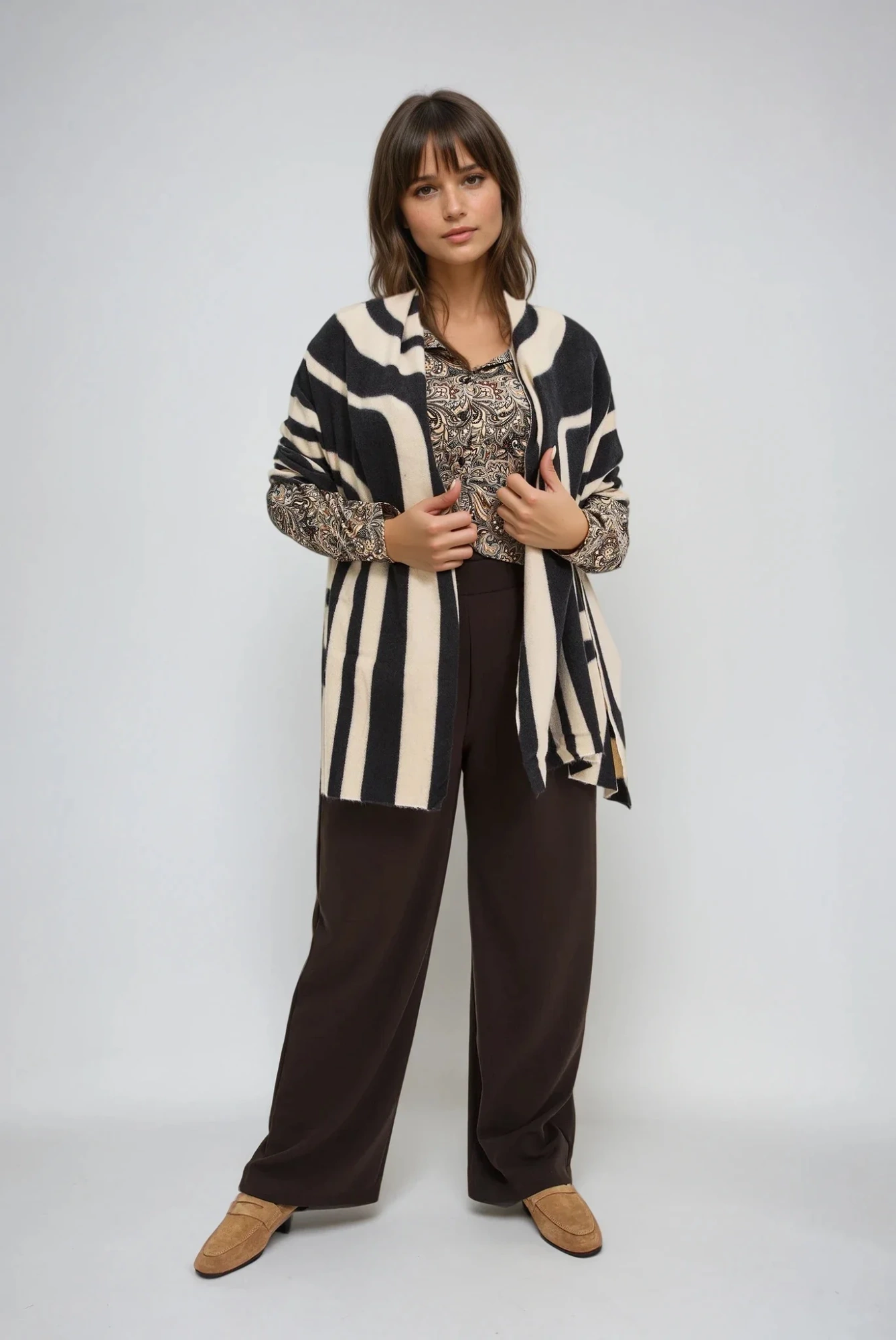 100% POLIESTER Szal w kolorze czarnym i beżowym. Świetnie sprawdzi się w jesiennych stylizacjach.