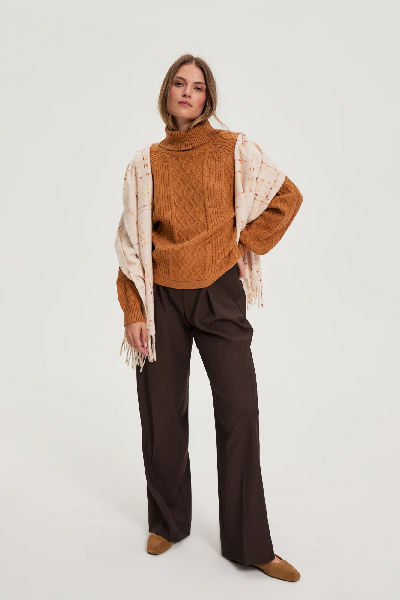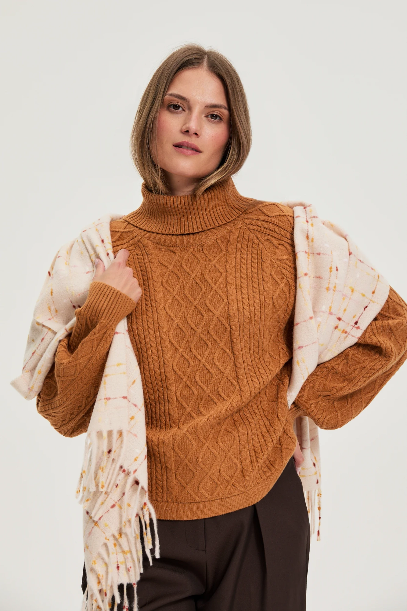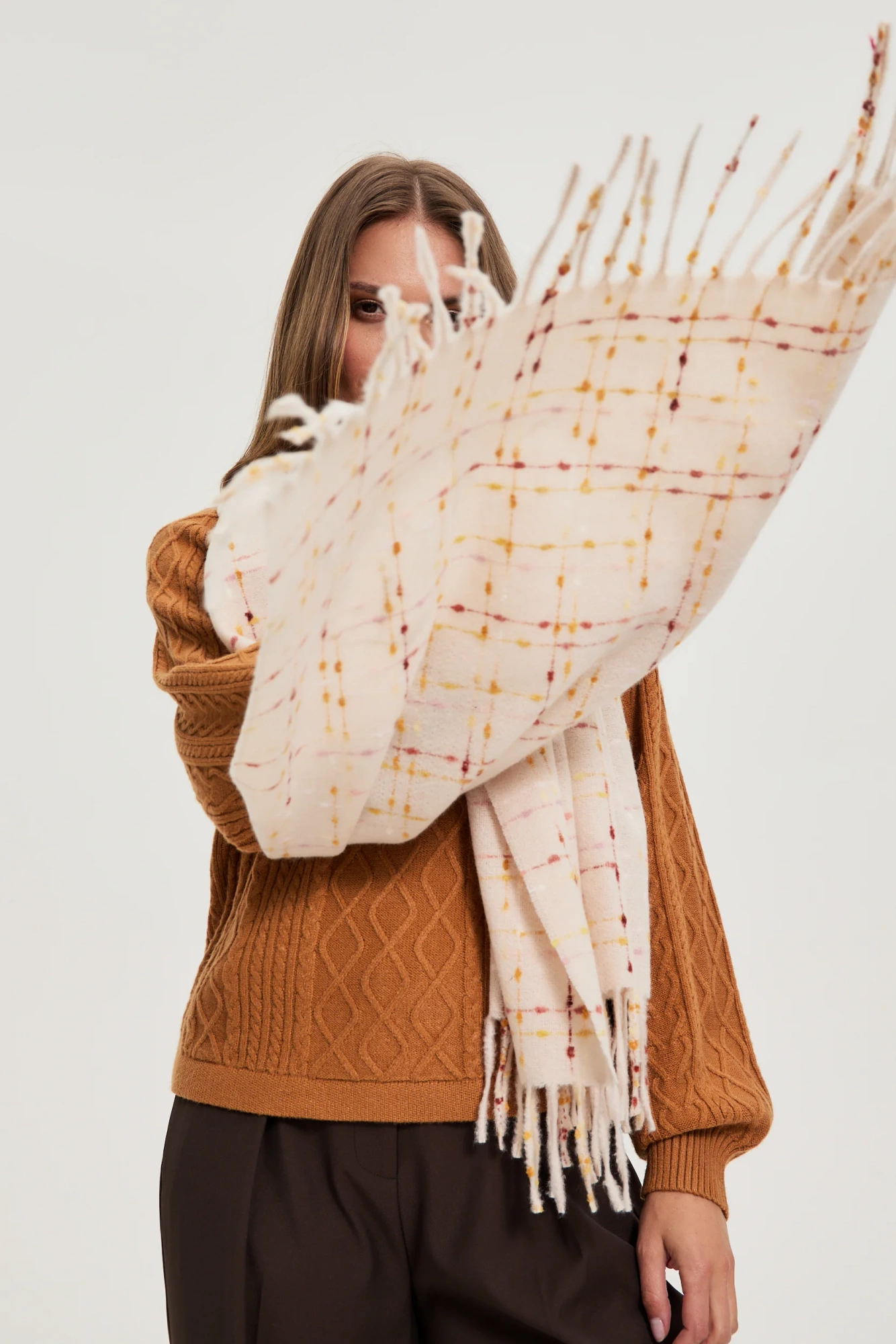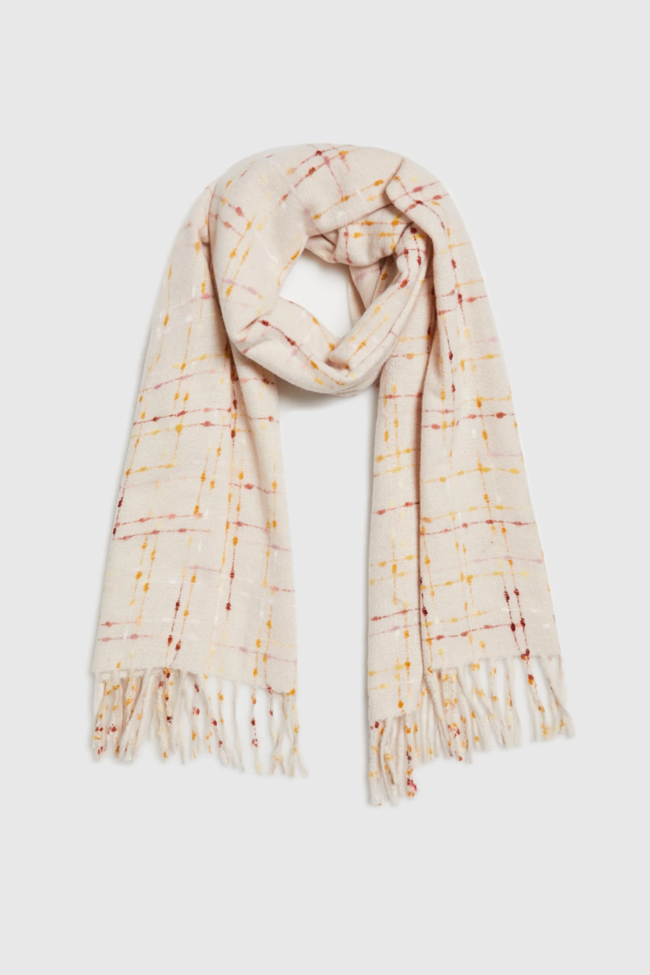 100% POLIESTER Szal w kolorze różowym, zakończony frędzlami. Świetnie sprawdzi się w jesiennych stylizacjach.
