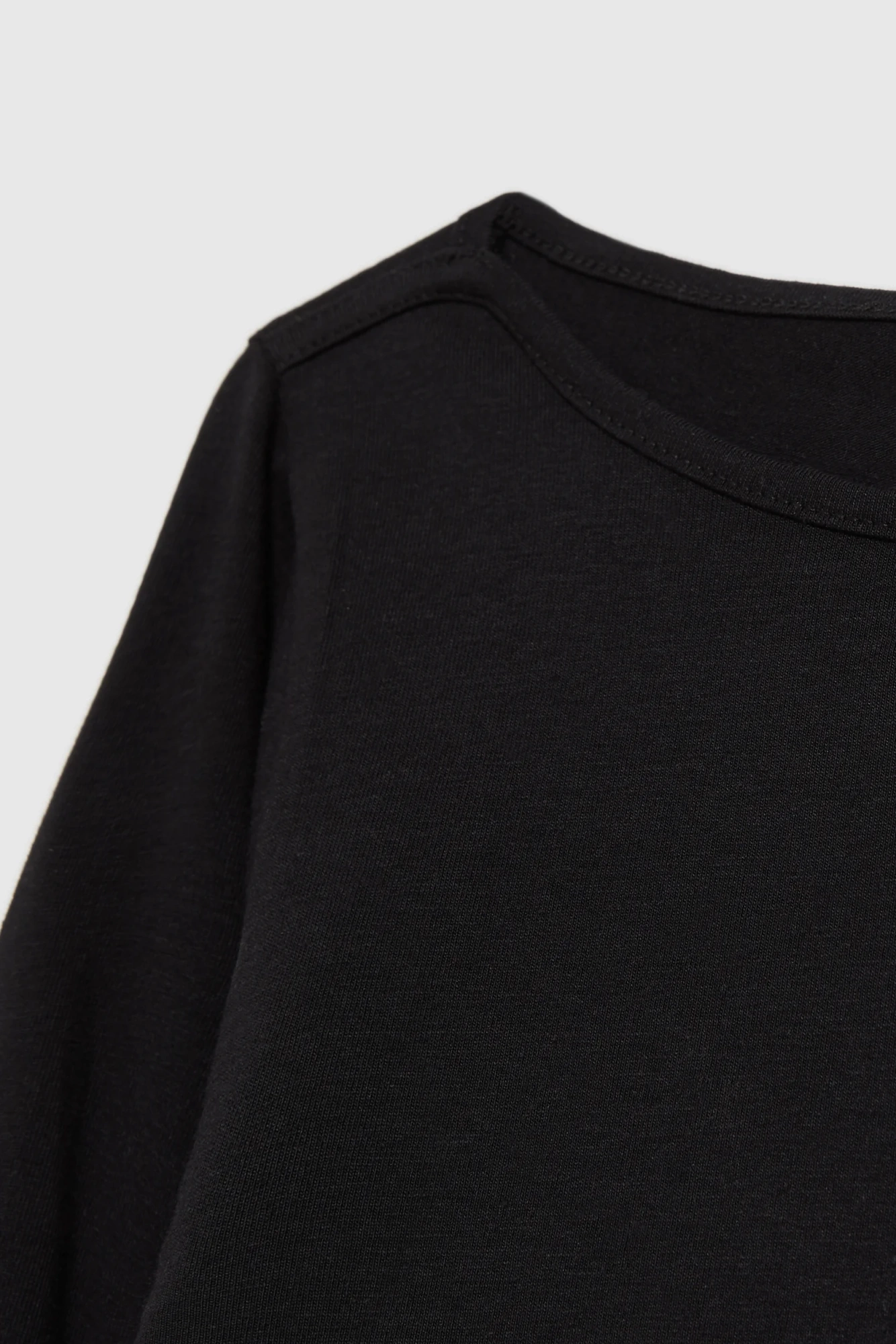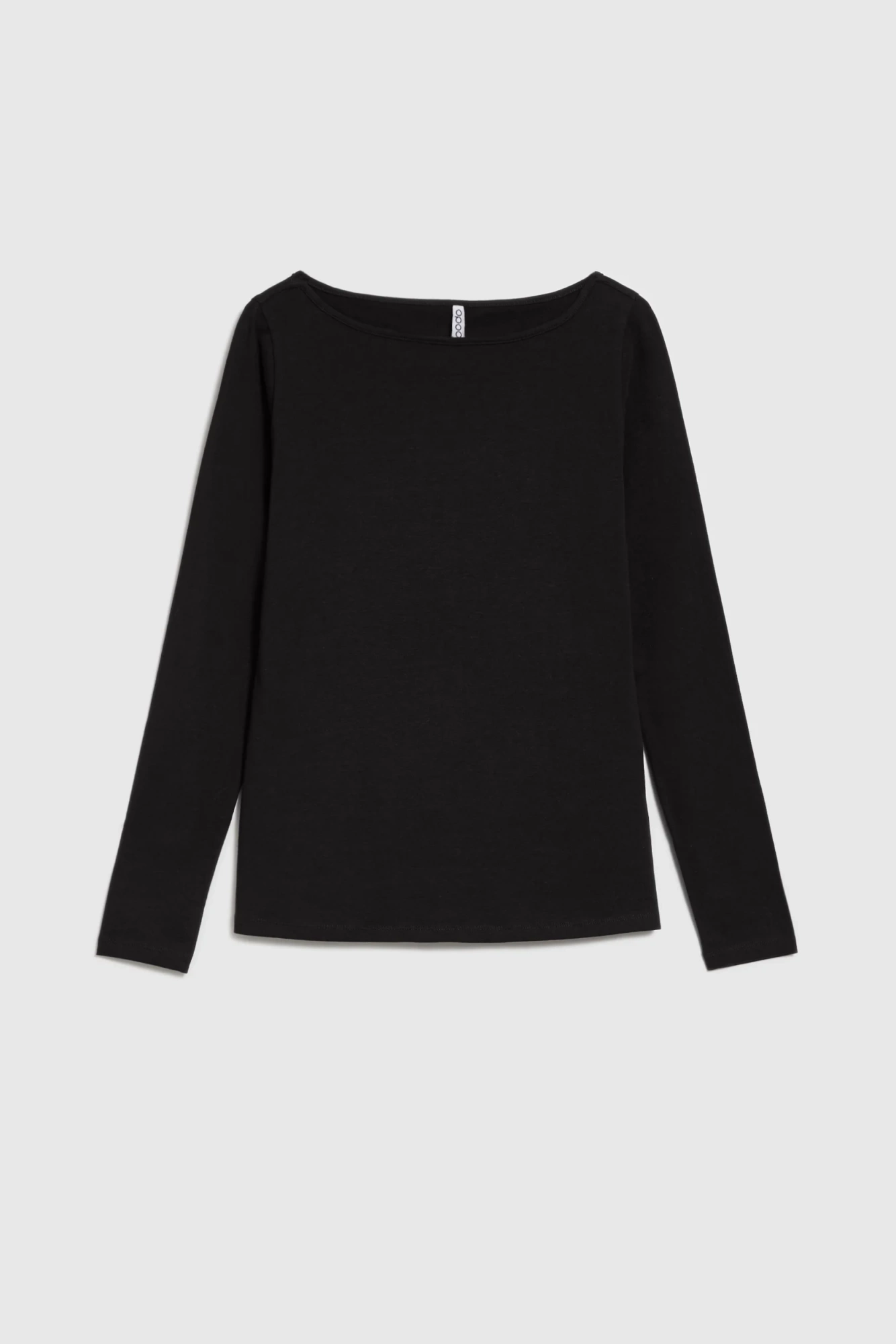 95%BAWEŁNA,5%ELASTAN Bluzka w kolorze czarnym to propozycja dla miłośniczek klasyki i minimalizmu. Gładka, bez wzoru, zachwyca dopasowanym krojem, który podkreśla sylwetkę i zapewnia elegancki wygląd. Dekolt łódka dodaje subtelności, a długi rękaw sprawia, że bluzka doskonale sprawdzi się przez cały rok. Idealna na spotkania biznesowe, rodzinne uroczystości czy wieczorne wyjścia ze znajomymi. Doskonale komponuje się zarówno ze spodniami materiałowymi, jak i klasyczną spódnicą ołówkową. Świetnie uzupełni stylizację z jeansami oraz modnymi marynarkami. Bluzka czarna to must have w każdej damskiej garderobie, znakomicie wpisujący się w modne stylizacje codzienne oraz bardziej eleganckie zestawienia.