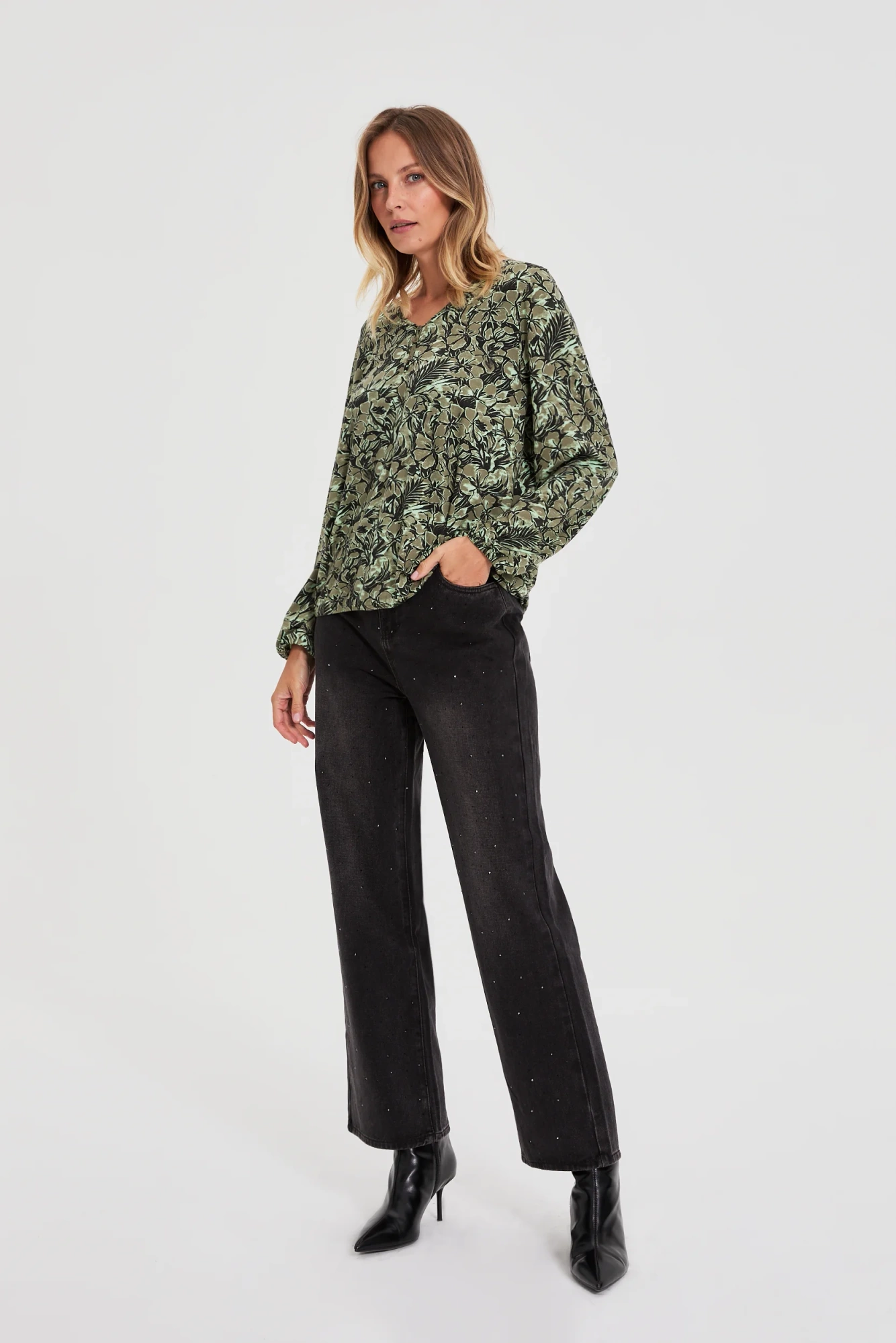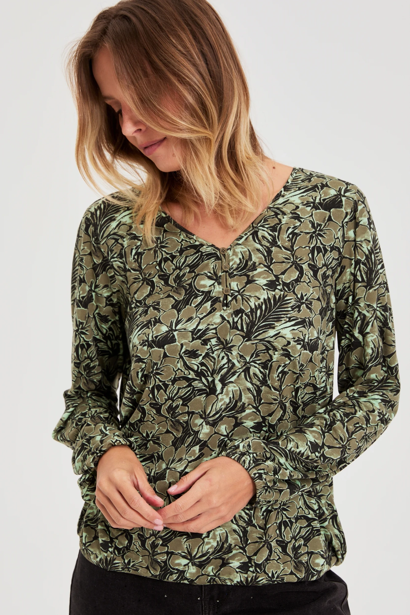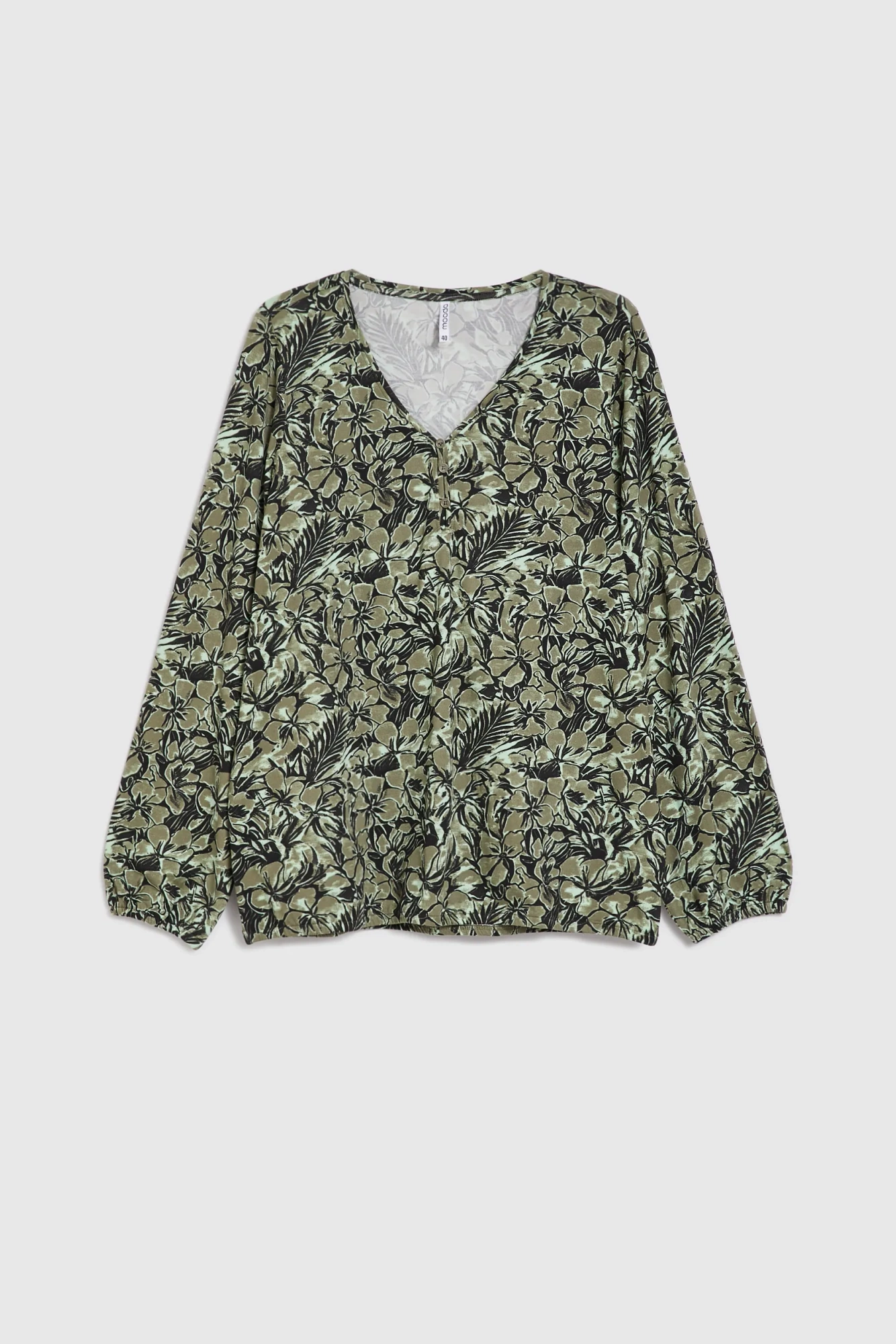 Bluzka w kwiaty oliwkowa