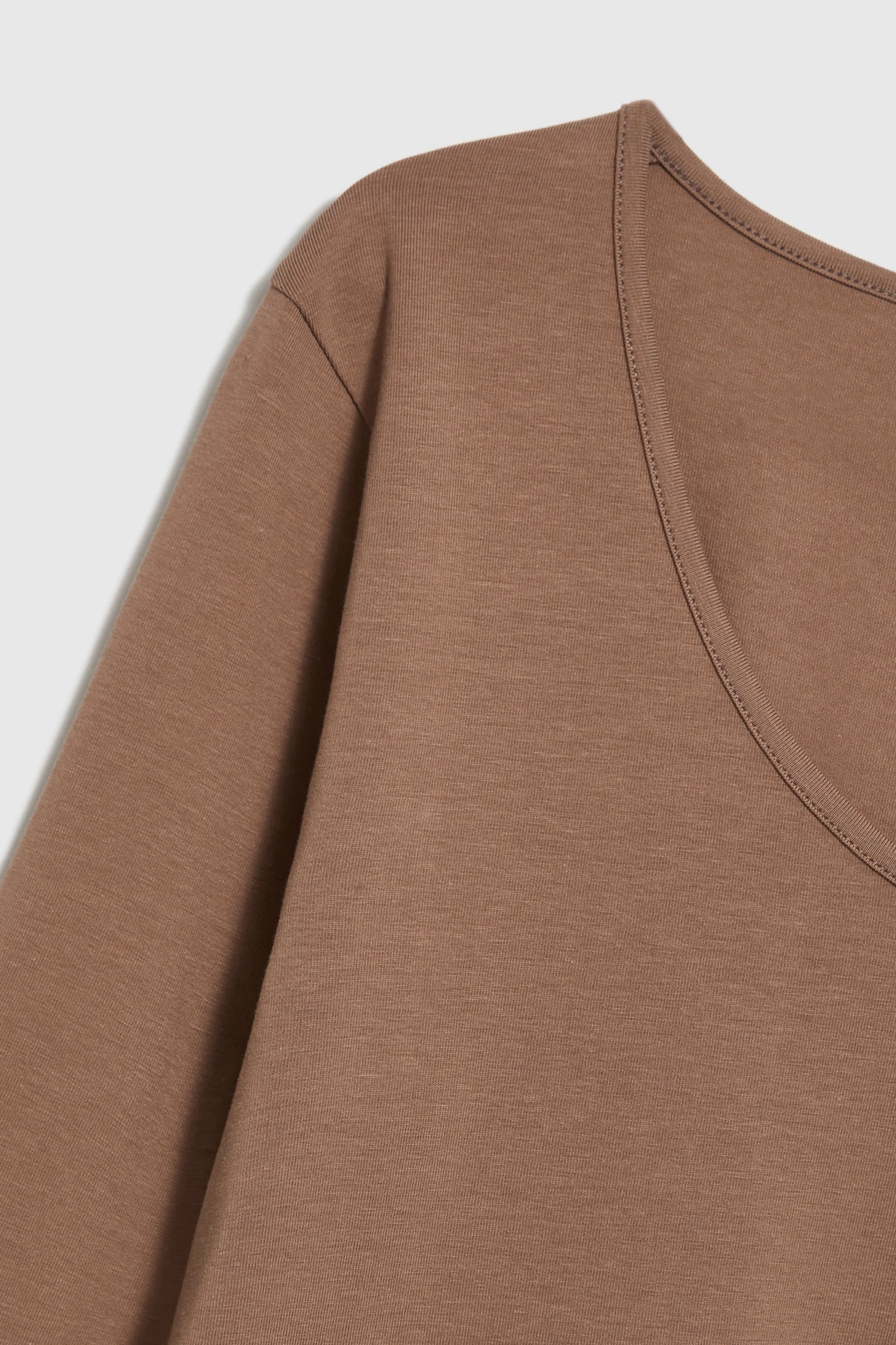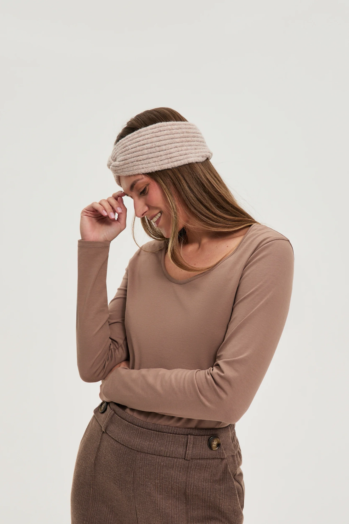 95%BAWEŁNA,5%ELASTAN Beżowa bluzka z długim rękawem zachwyca klasyczną elegancją i uniwersalnym stylem. Gładka, dopasowana forma podkreśla sylwetkę, a okrągły dekolt nadaje całości subtelnego charakteru. Starannie dobrana mieszanka bawełny i włókien syntetycznych gwarantuje komfort noszenia oraz łatwość pielęgnacji. Naturalna przewiewność materiału sprawia, że bluzka doskonale sprawdza się przez cały dzień. Idealny wybór na spotkania biznesowe, codzienne wyjścia czy wieczorne kolacje. Świetnie komponuje się zarówno z eleganckimi spodniami, spódnicą ołówkową, jak i klasycznymi jeansami czy żakietem.
