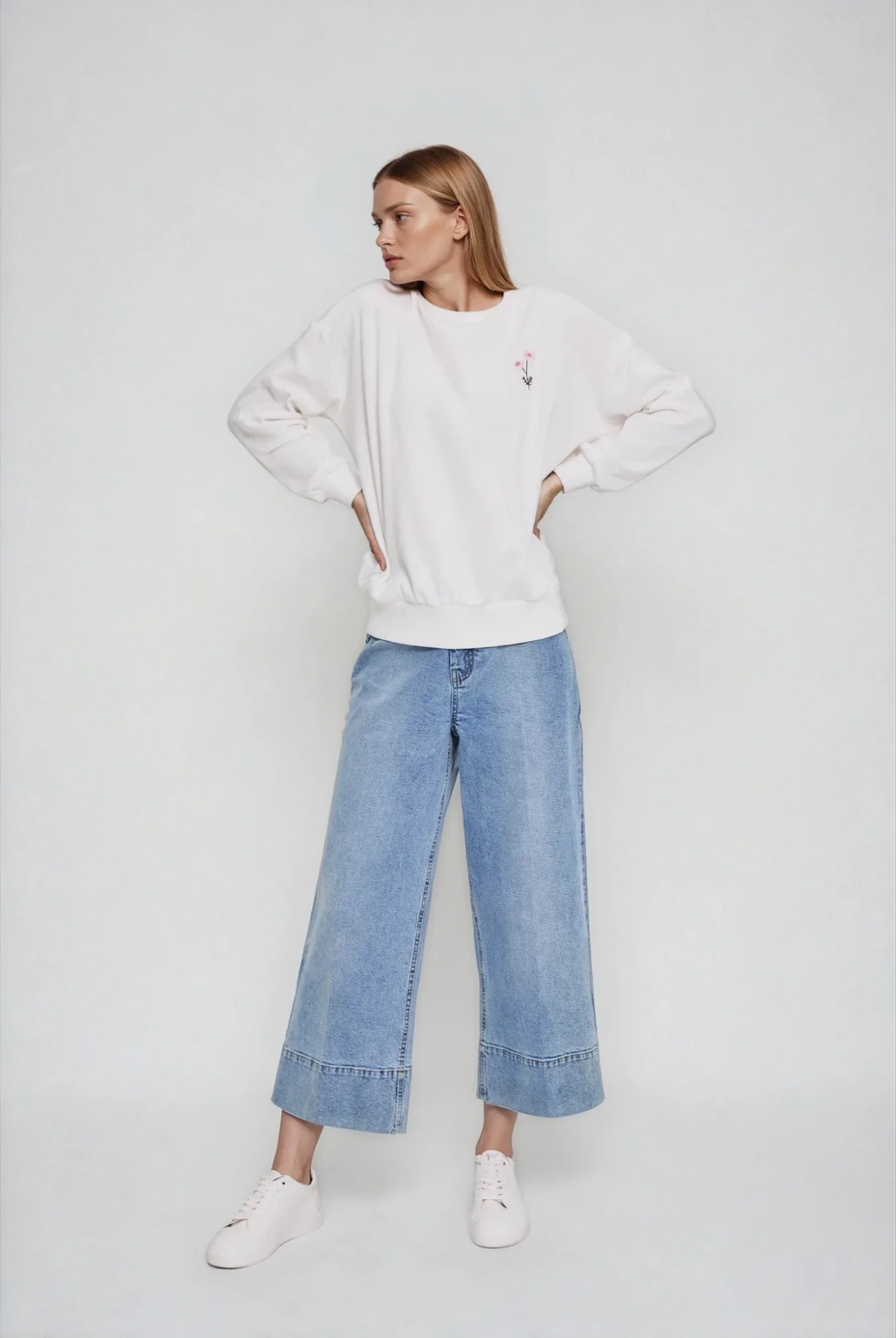 Bluza z haftowanym kwiatem biała