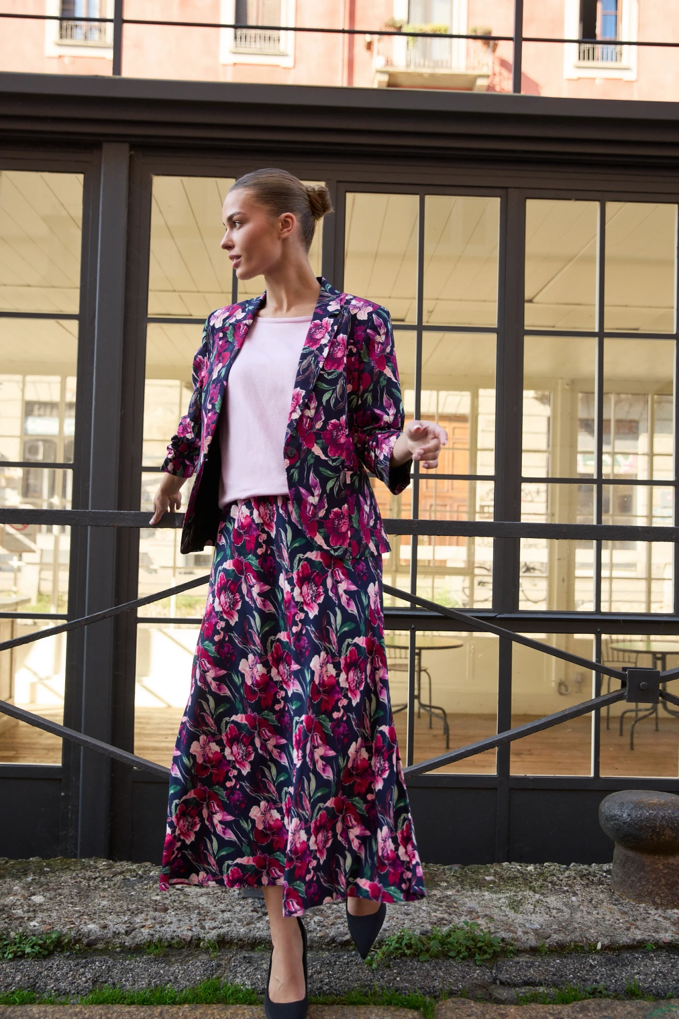 Spódnica w kwiaty granatowa
