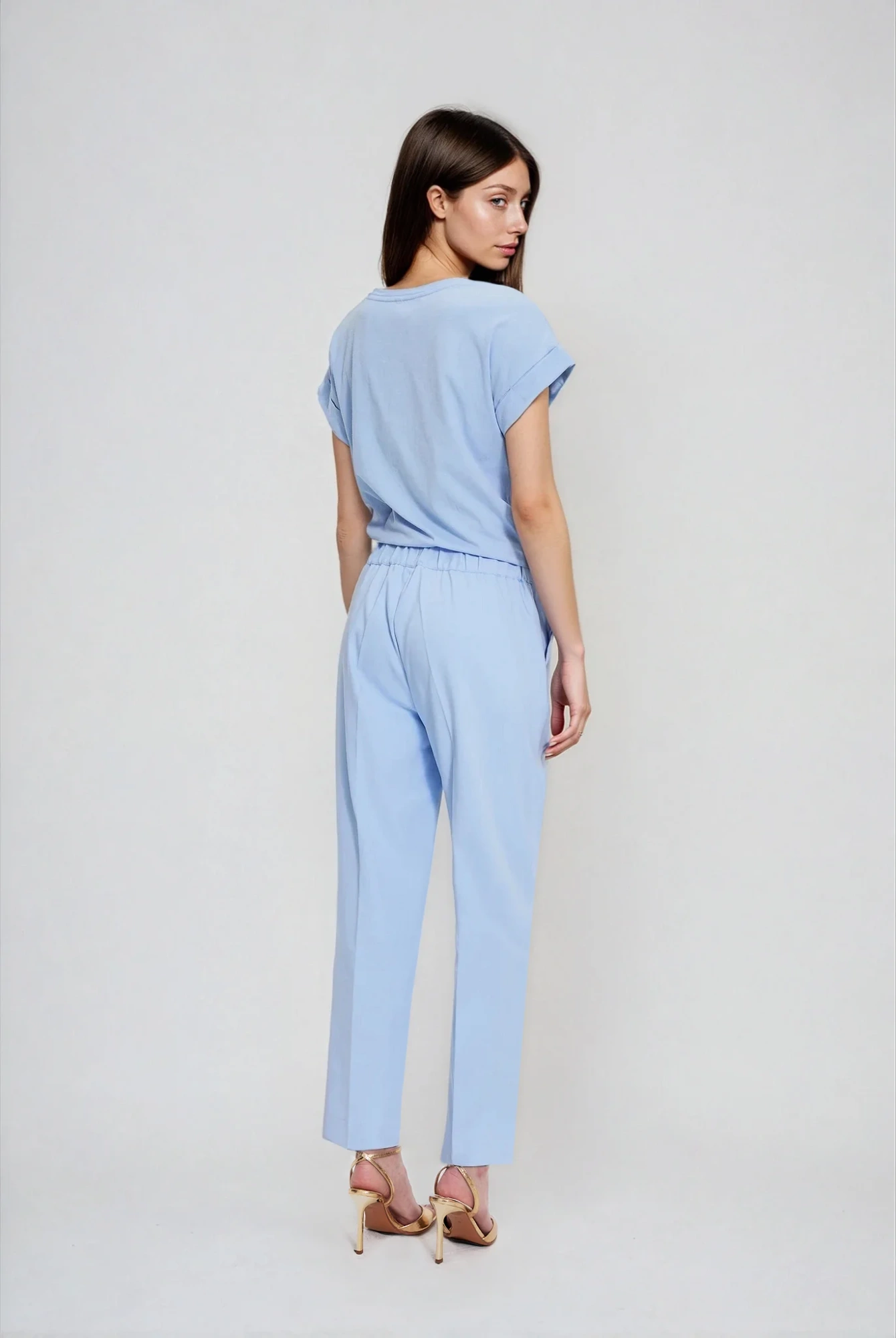 Spodnie z nogawkami w kant błękitne