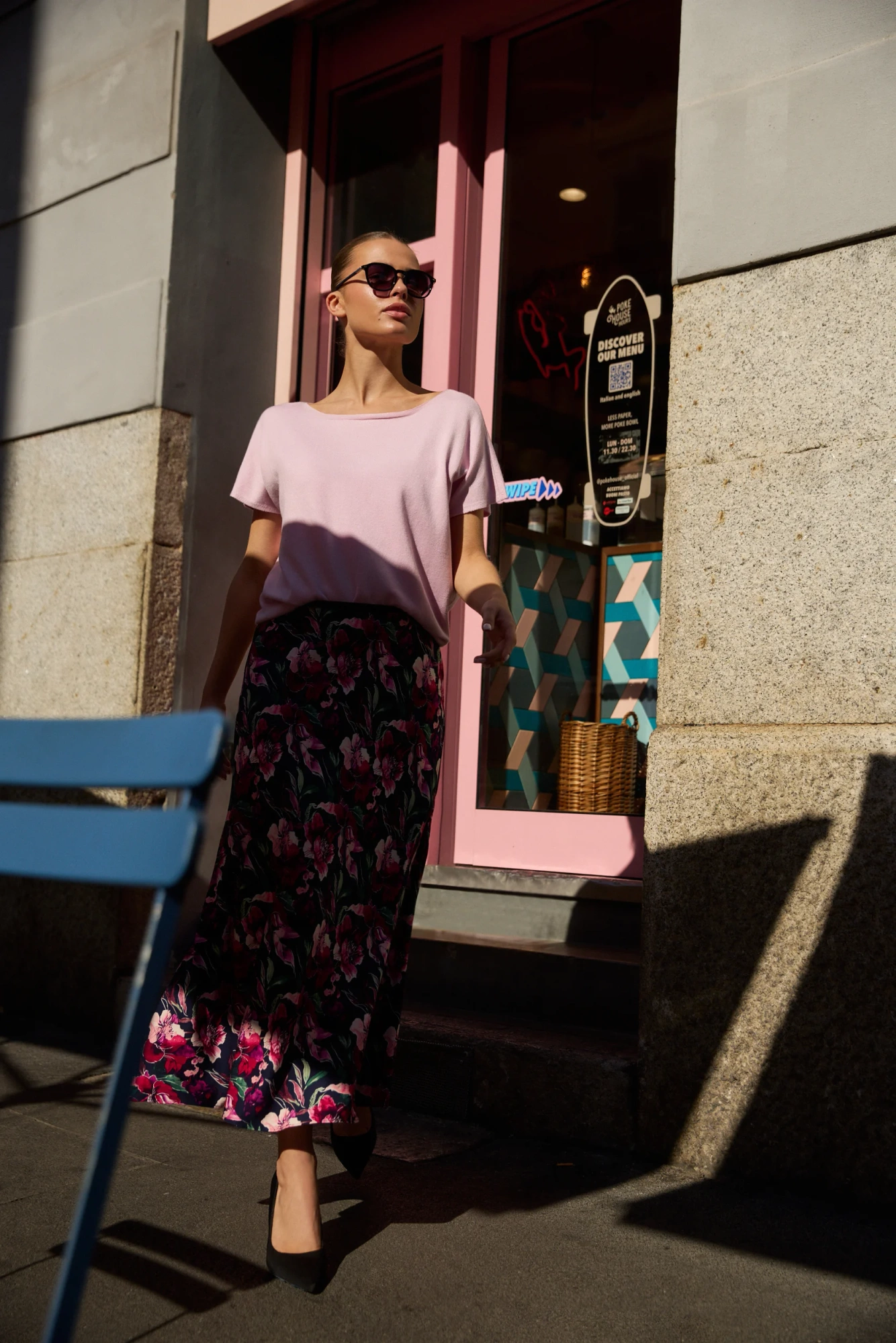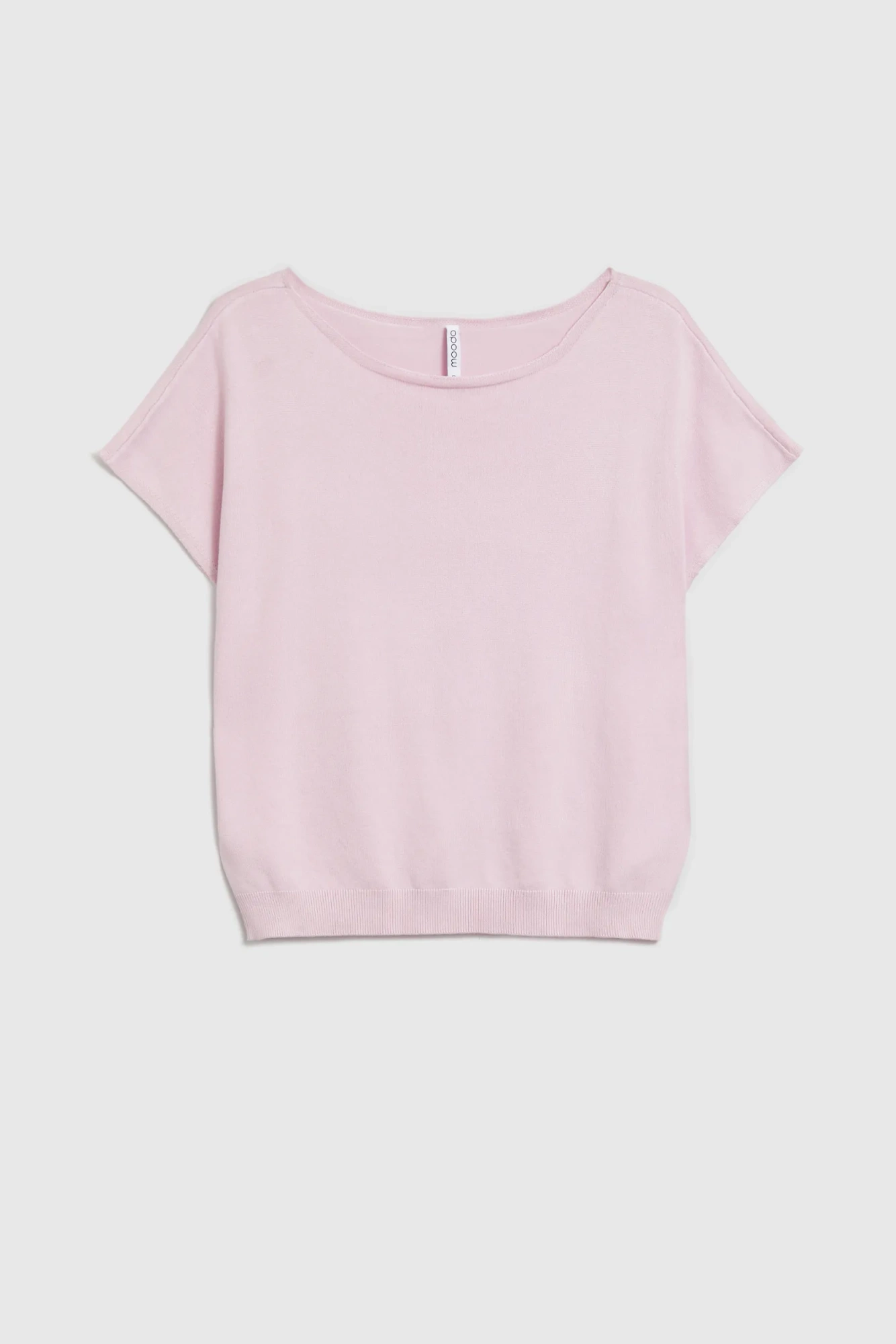 70%WISKOZA 30%POLIAMID Sweter w kolorze delikatnego różu powstał z przyjemnej w dotyku wiskozy, która zapewnia lekkość i miękko otula sylwetkę. Krótkie rękawy oraz kobiecy, okrągły dekolt wprowadzają świeżość do codziennych stylizacji, a uniwersalny fason podkreśla swobodę ruchów i naturalny styl. Ten sweter świetnie sprawdza się w dynamicznym trybie dnia, kiedy liczy się komfort i ponadczasowa elegancja, niezależnie od okazji. Idealny do pracy w zestawieniu ze spodniami materiałowymi lub ołówkową spódnicą, ale równie dobrze odnajduje się w casualowej odsłonie z jeansami czy pod lekką marynarką.