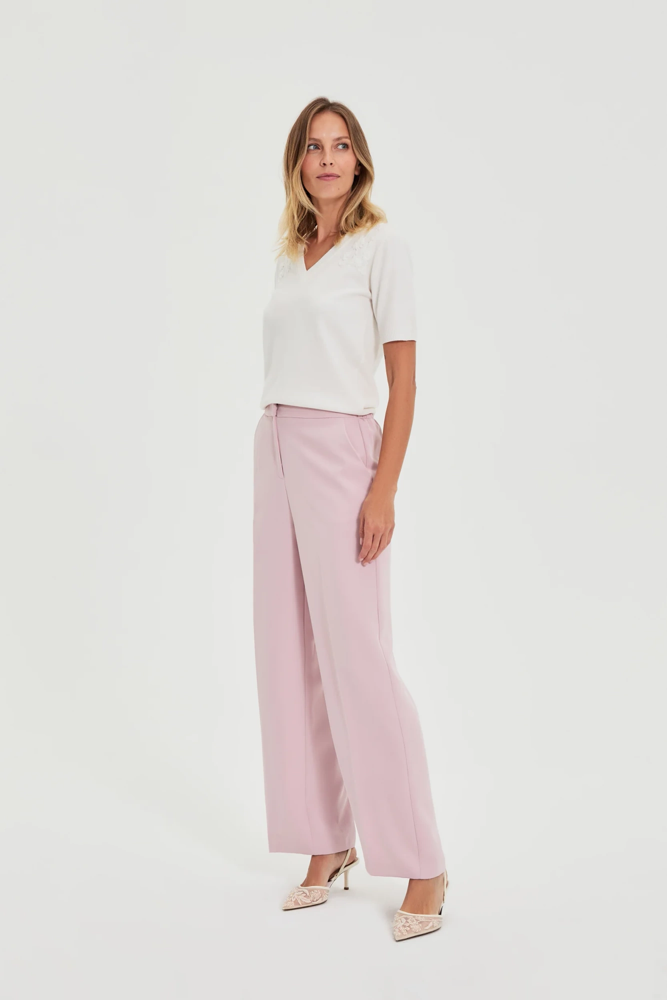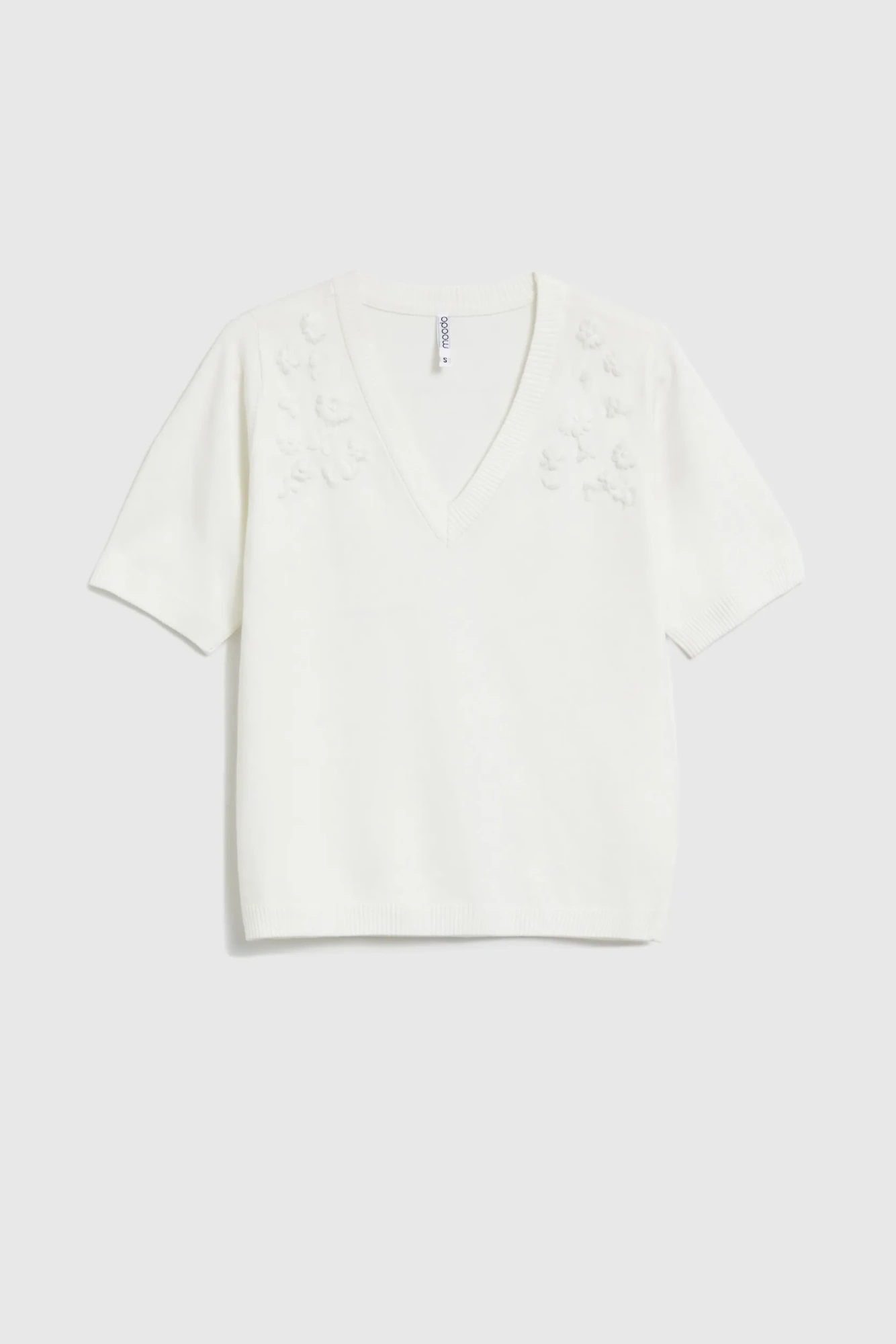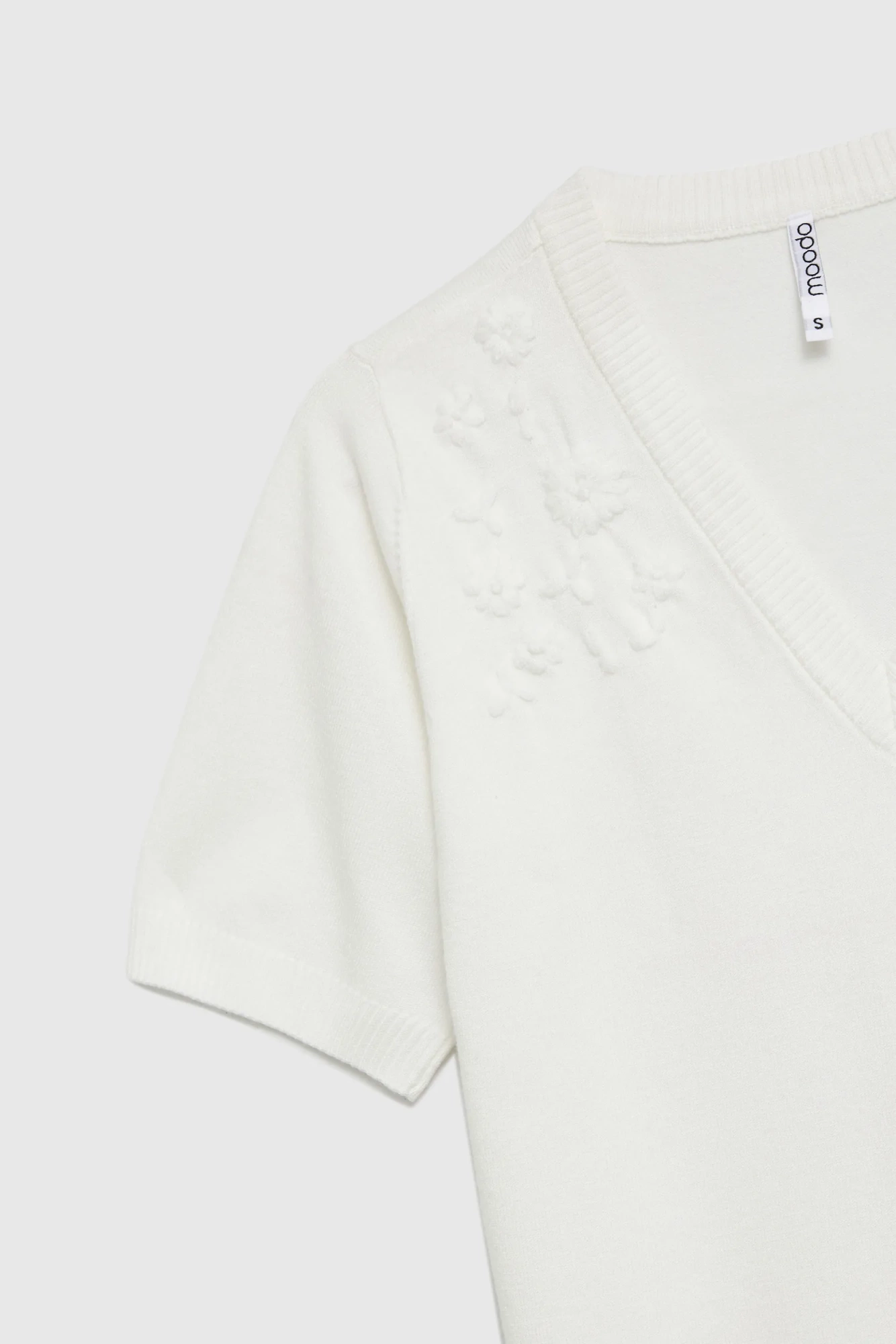 Sweter z krótkimi rękawami i dekoltem w serek biały