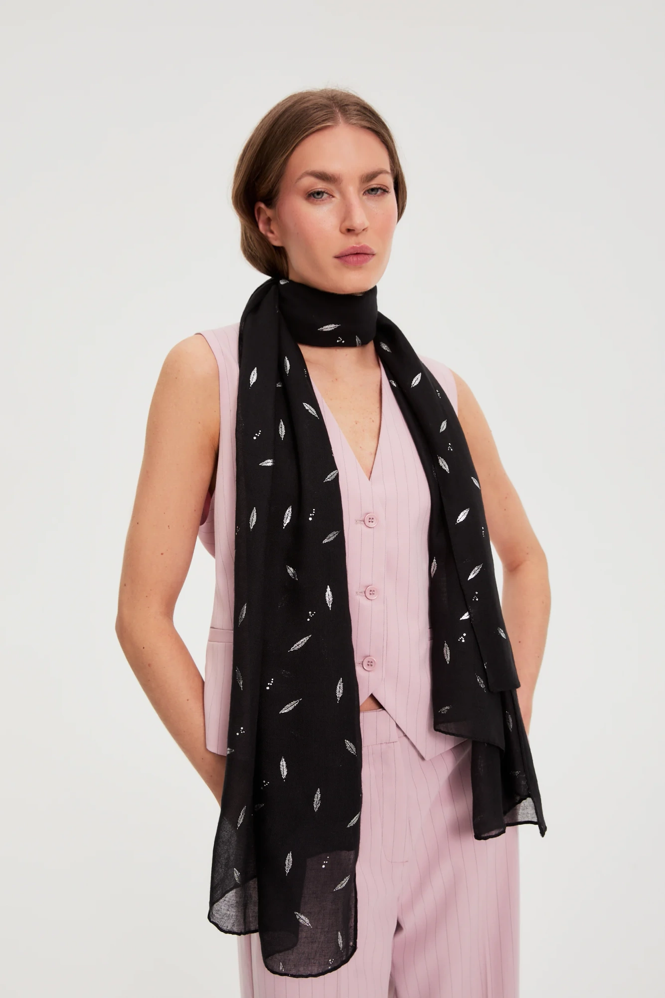 Szal z metalicznym nadrukiem czarny