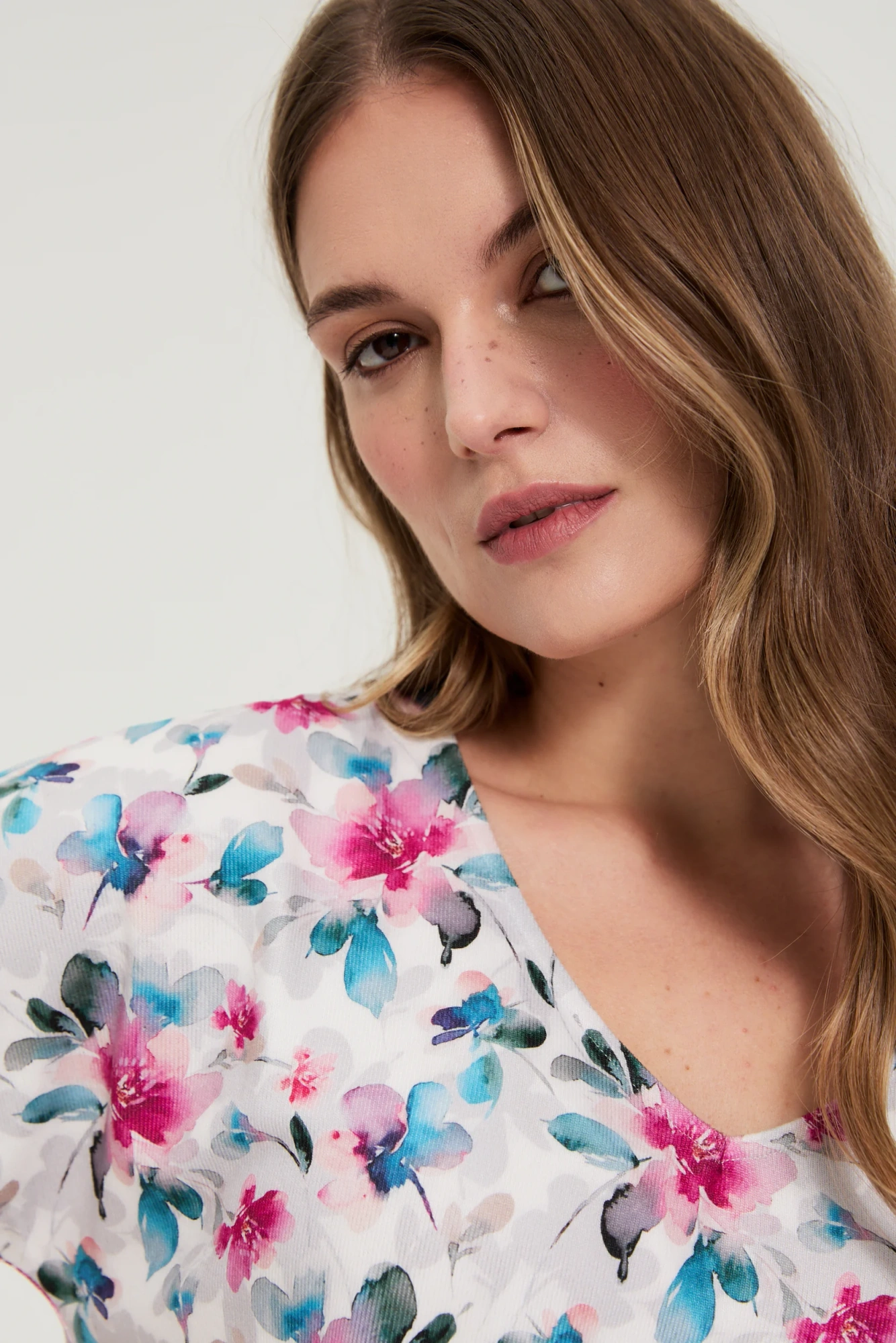 95%POLIESTER,5%ELASTAN Bluzka w kwiaty to propozycja dla kobiet, które lubią łączyć wygodę z subtelnym stylem. Delikatny dekolt w serek podkreśla kobiecość, a krótkie rękawy i prosty fason sprawiają, że całość prezentuje się lekko i nowocześnie. Kwiatowy wzór dodaje świeżości, wprowadzając odrobinę romantycznego nastroju do każdej stylizacji. Bluzka doskonale sprawdzi się zarówno w pracy, jak i podczas spaceru czy popołudniowego spotkania z przyjaciółmi. Łatwo zestawić ją z ulubionymi jeansami, klasyczną spódnicą czy luźnymi spodniami, a narzucona marynarka nada stylizacji eleganckiego charakteru. Stylowa i komfortowa, pasuje na wiele okazji – od casualowego looku po bardziej kobiece zestawy. To modny fason, który podkreśla indywidualność i zapewnia codzienny komfort.