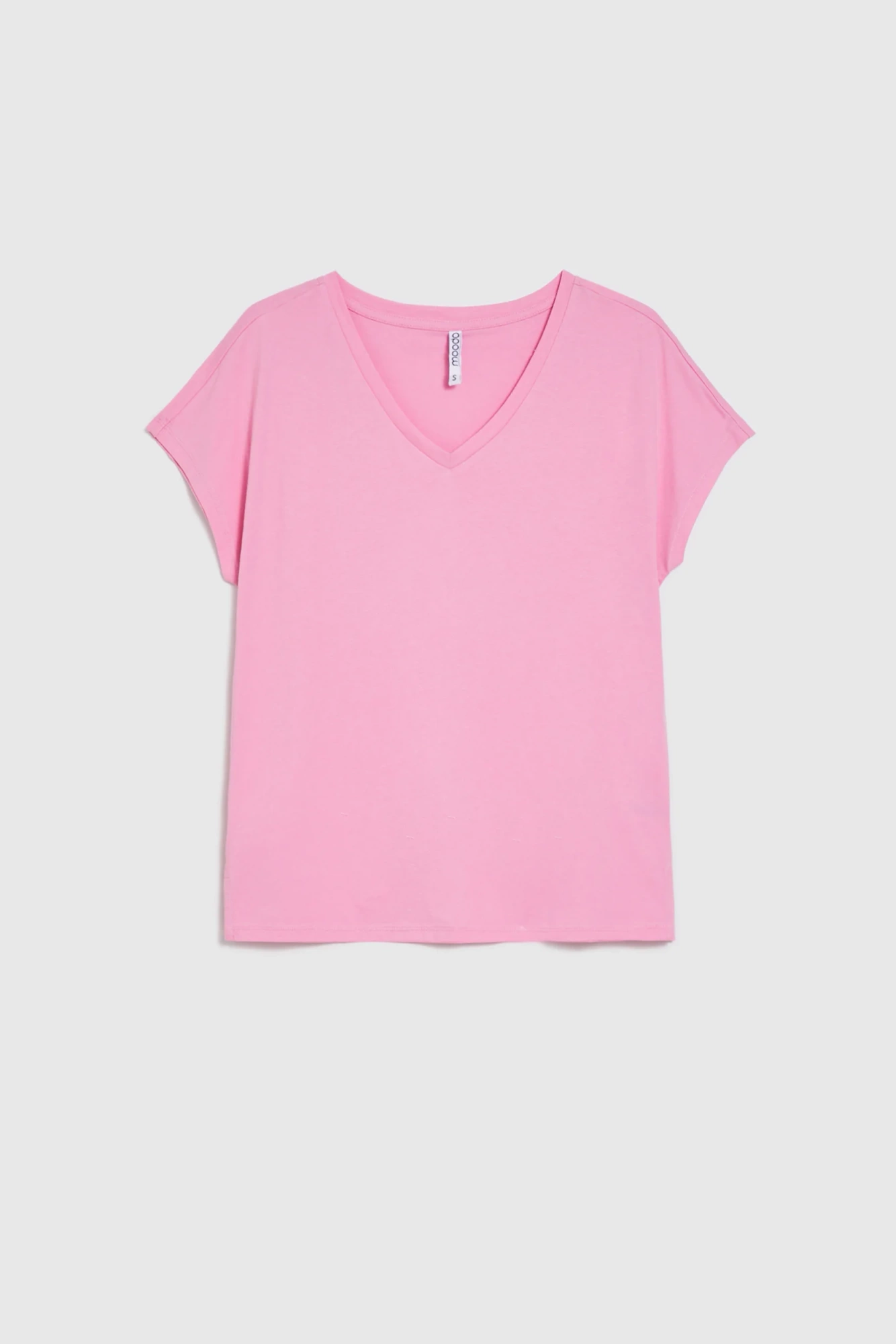Bawełniany t-shirt z dekoltem w serek różowy Bawełniany t-shirt z dekoltem w serek różowy Bawełniany t-shirt z dekoltem w serek różowy Bawełniany t-shirt z dekoltem w serek różowy Bawełniany t-shirt z dekoltem w serek różowy Bawełniany t-shirt z dekoltem w serek różowy Bawełniany t-shirt z dekoltem w serek różowy